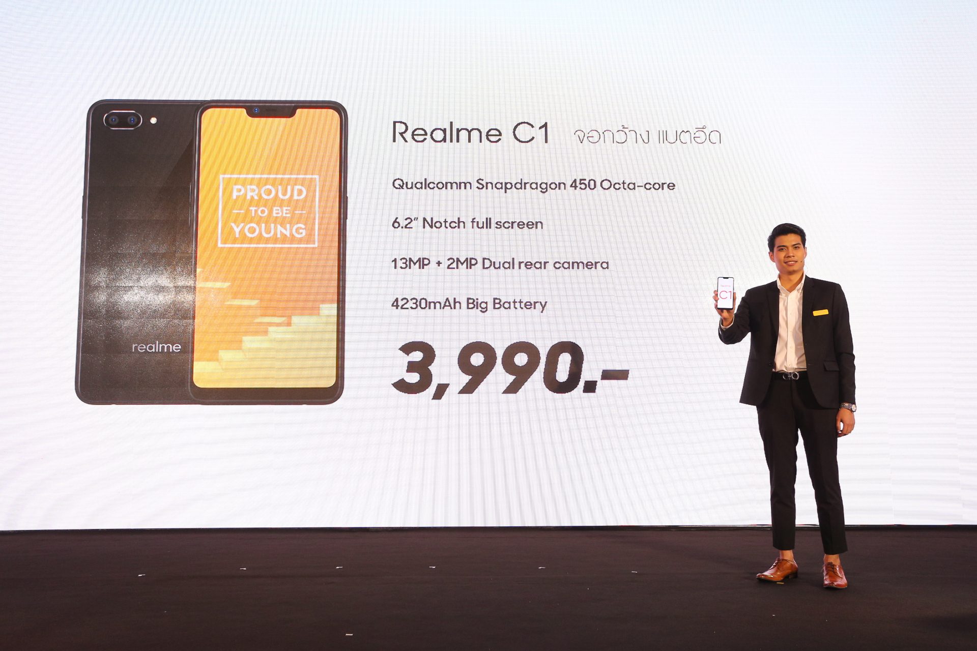 และในงานนี้ Realme เปิดตัว C1 สมาร์ทโฟนราคาประหยัด แค่ 3,990 บาท แต่ได้สเปค