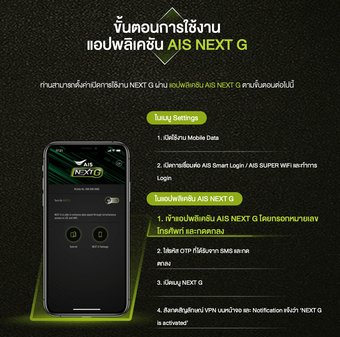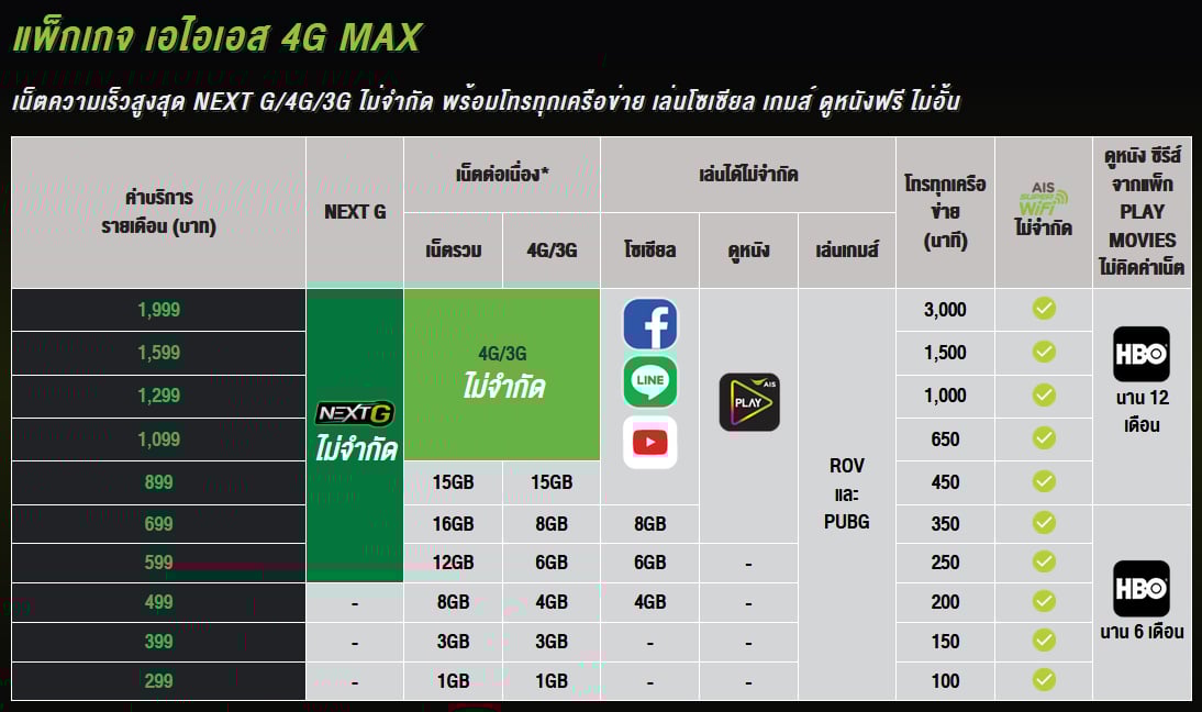 รายละเอียดเกี่ยวกับ AIS NEXT G สามารถดูได้ที่ ais.co.th/nextg