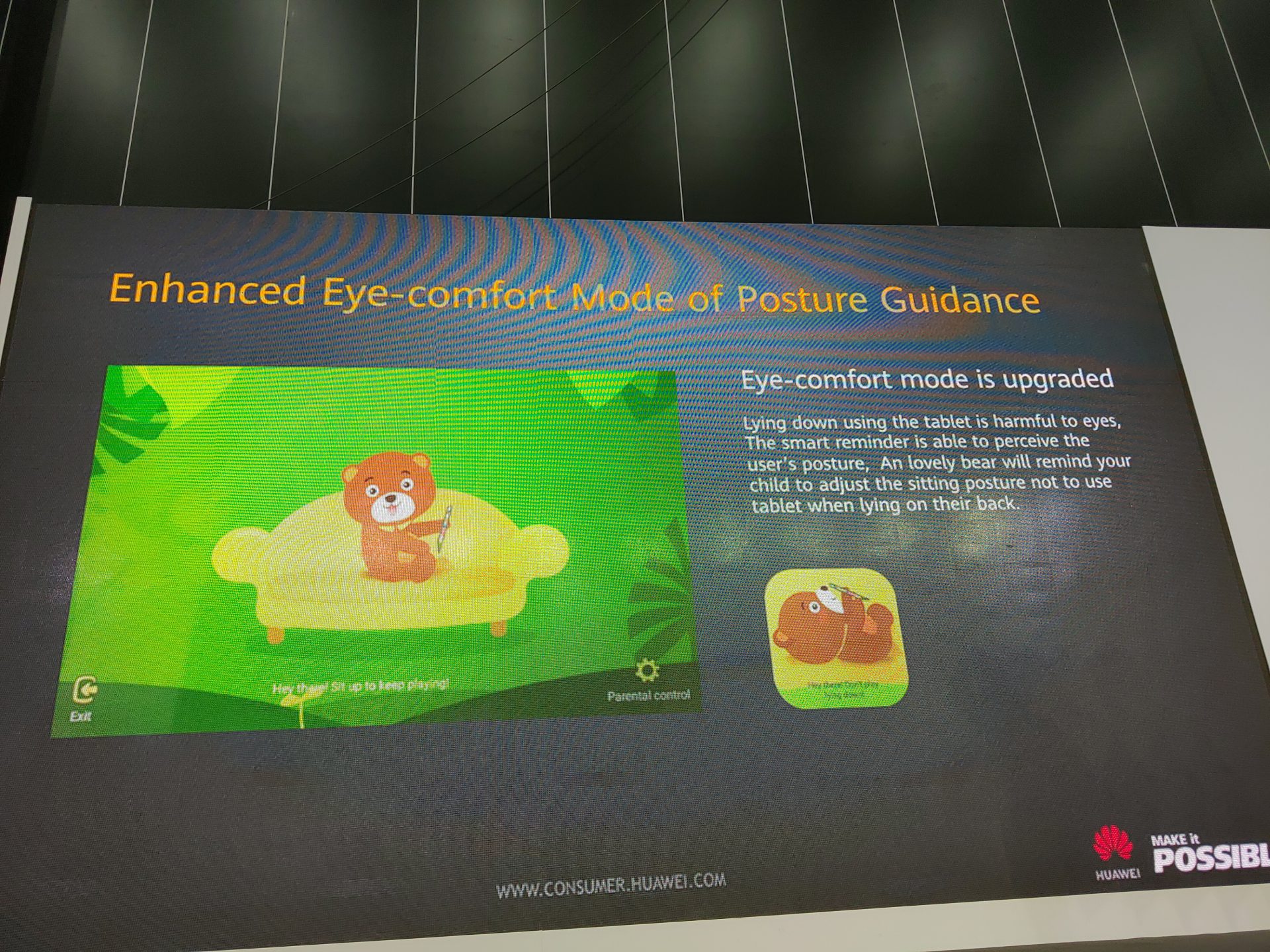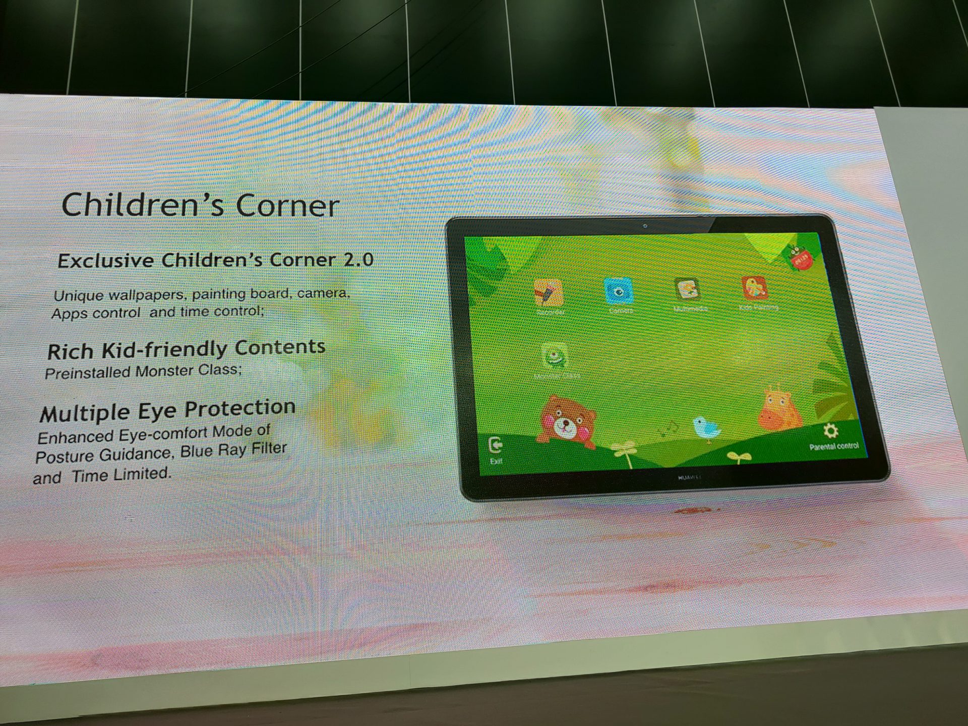 นอกจากสเปคแล้ว ยังมีฟีเจอร์เด่น ๆ ไม่ว่าจะเป็น Huawei Share 2.0 ที่สามารถโอนถ่ายข้อมูลระหว่างอุปกรณ์หัวเว่ยได้อย่างสะดวก และ Children’ Corner 2.0 ช่วยให้เด็กใช้งาน Tablet ได้อย่างเหมาะสมตามวัย โดยมีมาสคอตที่เข้ามาตอบสนองเช่น ถ้าเด็กนอนเล่นก็จะมีไอคอนขึ้นมาเตือนว่าอย่าทำ เพราะจะทำให้เกิดอันตรายได้ เป็นต้น