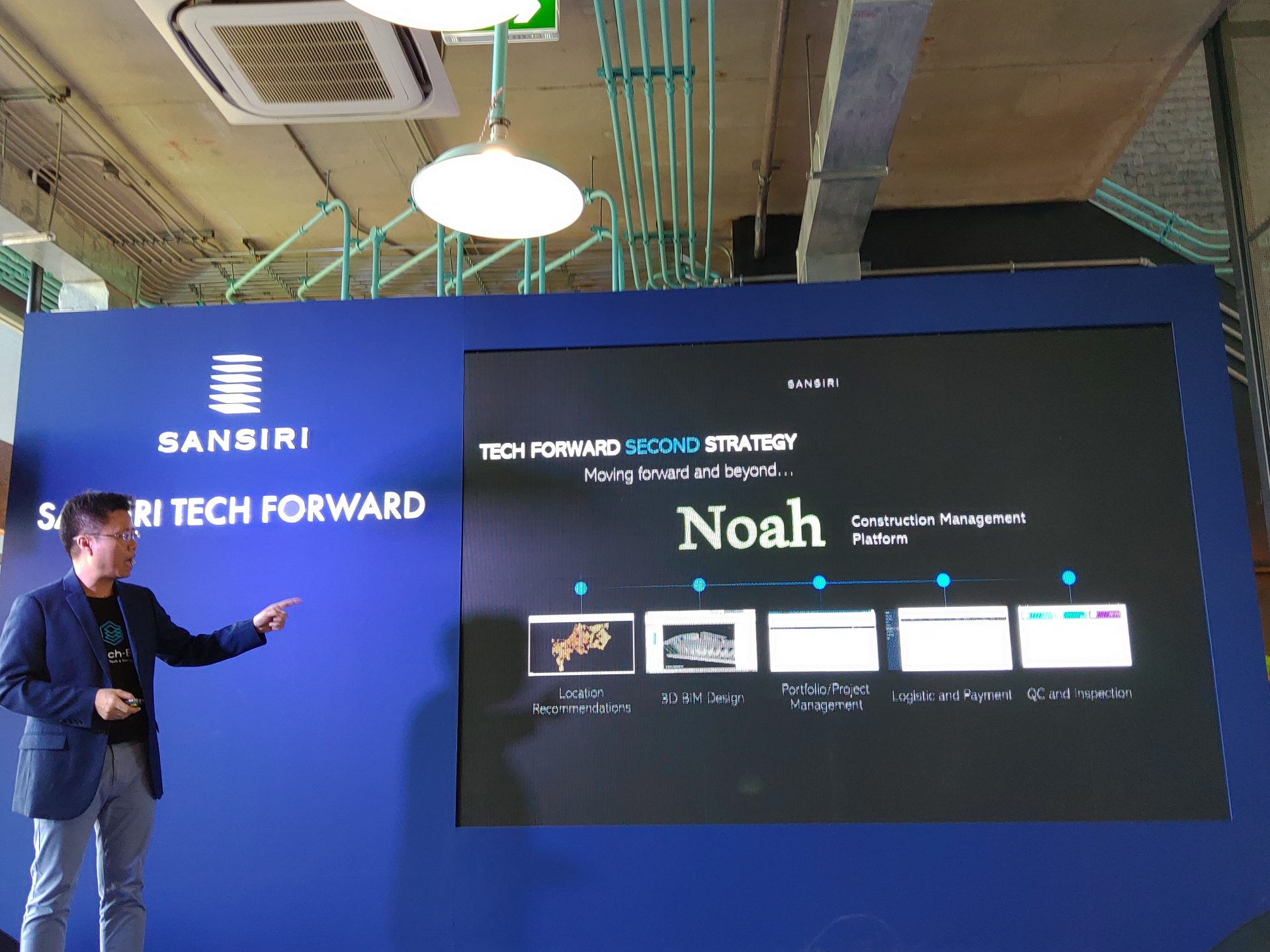 - Noah Platform บริหารการก่อสร้างทั้งหมดตั้งแต่การเลือกที่ การออกแบบ ไปจนถึงการตรวจสอบคุณภาพ ทุกอย่างถ้ามีข้อมูลถึงกัน ก็จะช่วยลดต้นทุน ลดระยะเวลาและบุคลากรที่ต้องใช้งานลงอย่างมาก