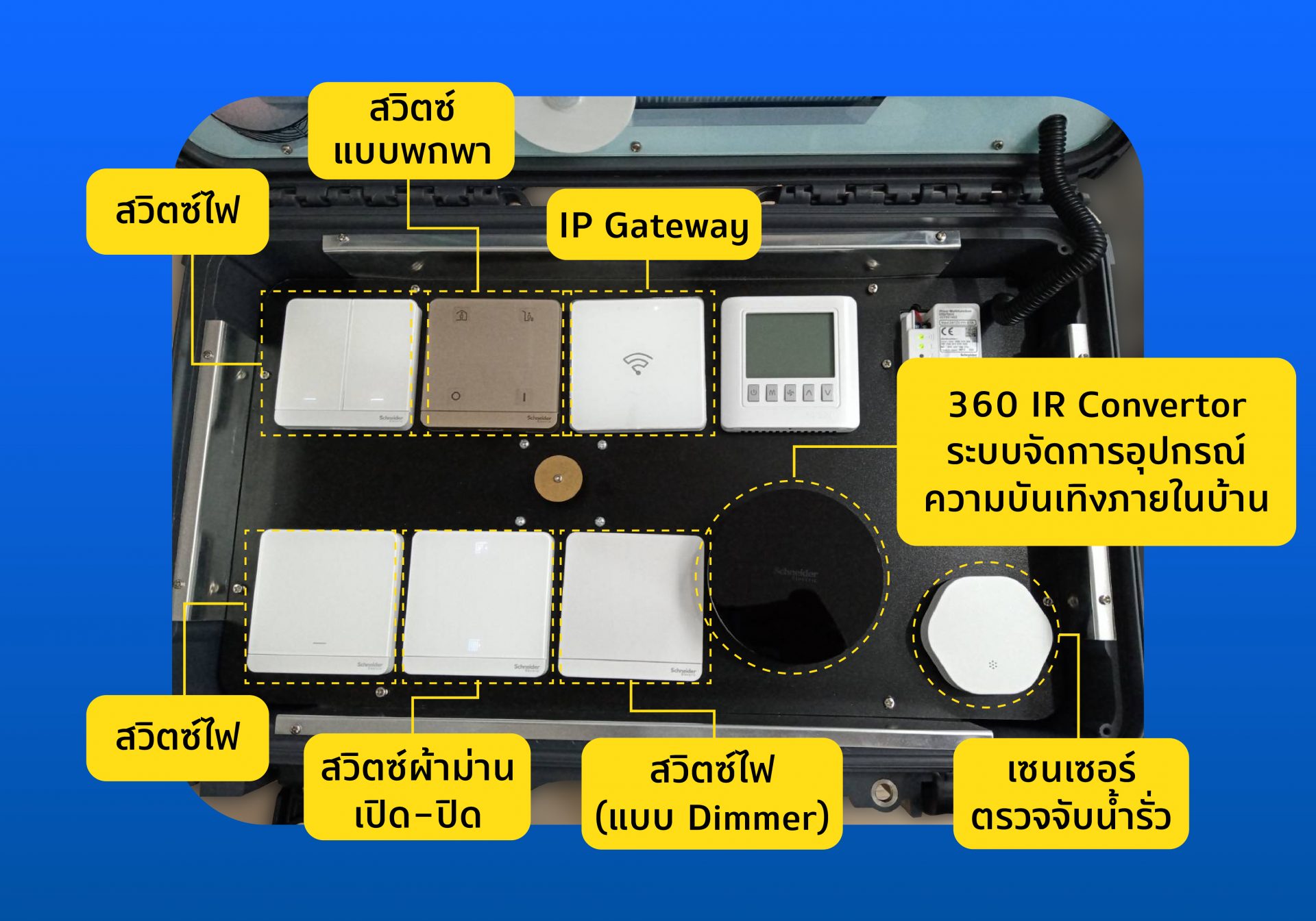 - ไอพีเกตเวย์ (IP Gateway) ซึ่งเป็นหัวใจสำคัญในการรับส่งข้อมูลการสื่อสารต่างๆ จากสมาร์ทโฟน และอุปกรณ์ต่างๆ ที่เราต้องการควบคุม