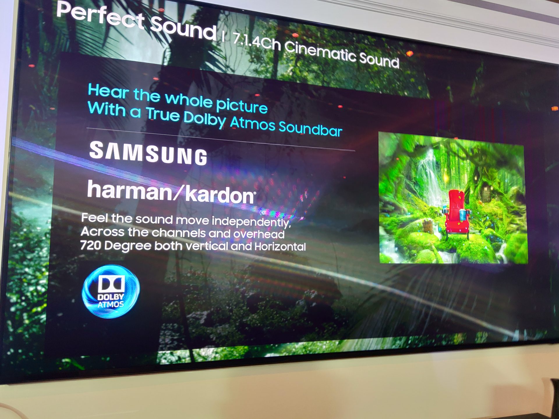 นอกจากนี้ยังผสานการทำงานร่วมกับ ดอลบี แอทมอส (Dolby Atmos) ระบบเทคโนโลยีเสียงรอบทิศทางแบบ 360 องศา ผ่านลำโพง 7.4.1 Channel