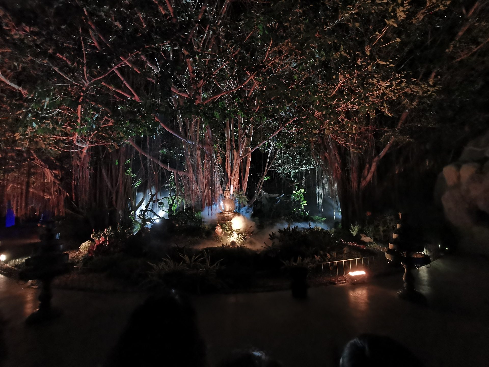 - ปฐมบทแห่งวัดร่องขุ่น (WAT RONG KHUN BEGINS) ณ หอพระพิฆเนศ จะเป็นการจัดที่นั่งให้ชมการแสดง เปิดฉากอย่างยิ่งใหญ่ด้วยดนตรีโหมโรงครบเครื่องไฟเรืองรองส่องสว่างจับตาที่องค์พระพิฆเนศในรูปแบบของการแสดงละครเวทีที่จะพาผู้ชมย้อนกลับไปยังจุดเริ่มต้นของศิลปินผู้ยิ่งใหญ่ในหมู่บ้านเล็กๆในจังหวัดเชียงราย กับเรื่องราวการเดินทางต่อสู่กับโชคชะตา อุปสรรค และความเชื่อสู่การศิลปินแห่งชาติผู้ยิ่งใหญ่ที่ทั่วโลกรู้จักในชื่อของอาจารย์เฉลิมชัย โฆษิตพิพัฒน์ ทั้งการสร้างสรรค์ในแต่ละฉากมีความสวยงามเต็มเปี่ยมไปด้วยเรื่องราวของ