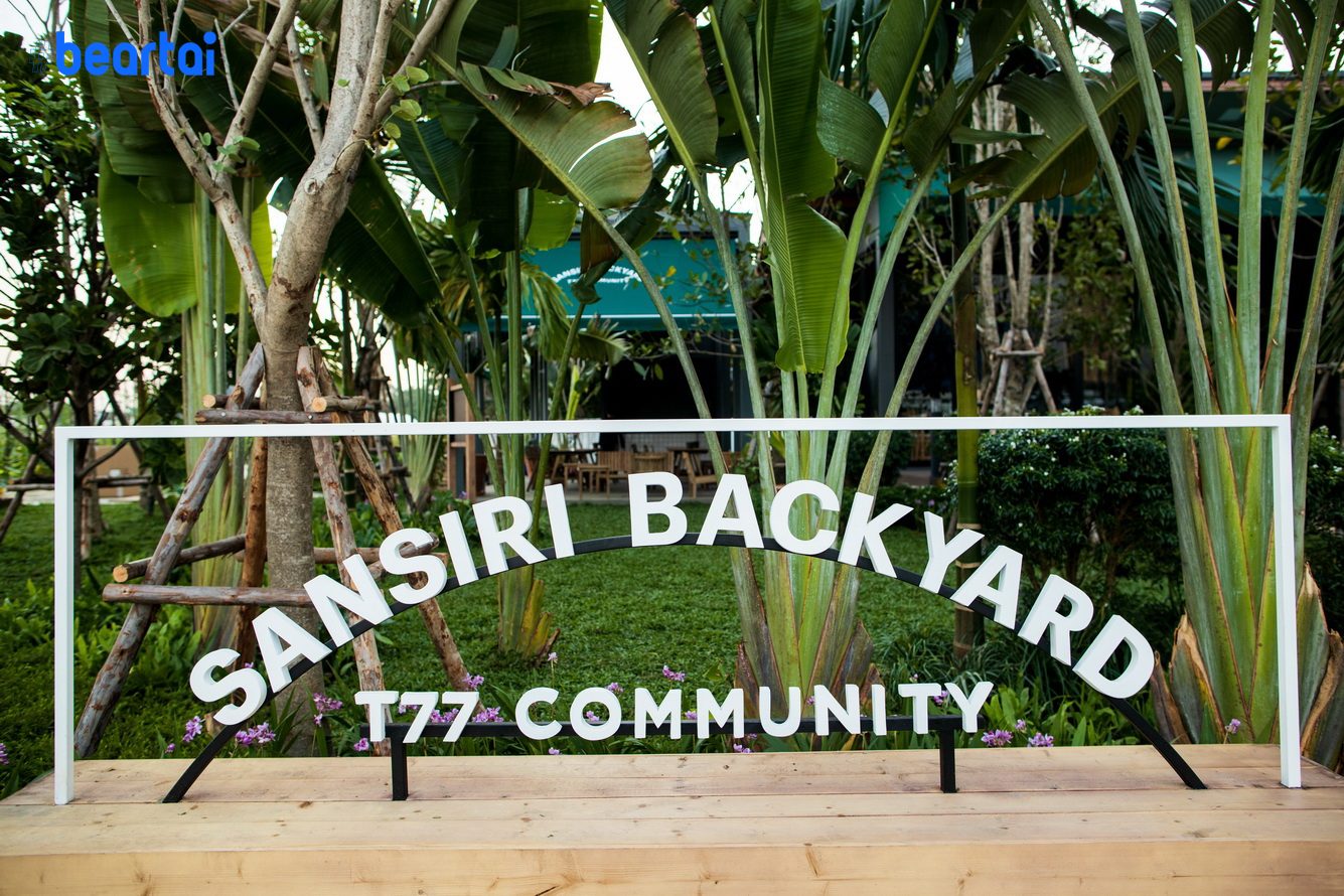 โครงการ “Sansiri Backyard @T77 Community” ตั้งอยู่ที่ซอยสุขุมวิท 77 พื้นที่แห่งนี้ถูกพัฒนาจากการเป็นพื้นที่เหลือใช้ของโครงการก่อสร้างของแสนสิริ ให้กลายมาเป็นสวนผักและผลไม้ออร์แกนิคขนาด 15 ไร่ โดยทางแสนสิริเปิดโอกาสให้ลูกบ้าน สามารถปลูกผักและผลไม้ได้ในพื้นที่ของตนเอง นอกจากนี้ภายในสวนผัก ยังมีพื้นที่ให้ลูกบ้านสามารถมาเก็บเกี่ยวผักและผลไม้ไปบริโภคได้อีกด้วย