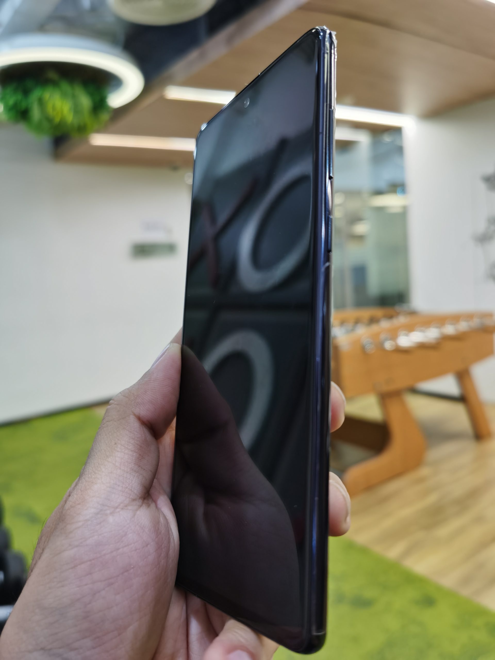 ภาพรวมของเครื่องมีการเปลี่ยนหลายอย่างไปเยอะครับ เช่นหน้าจอที่ไม่โค้งเหมือนตัวรุ่นพี่แล้ว ส่วนกล้องหน้าก็เปลี่ยนการเจาะรูให้ไปอยู่ตรงกลางหน้าจอเหมือน Note 10 และเปลี่ยนวัสดุฝาเครื่องเป็นพลาสติกแทน