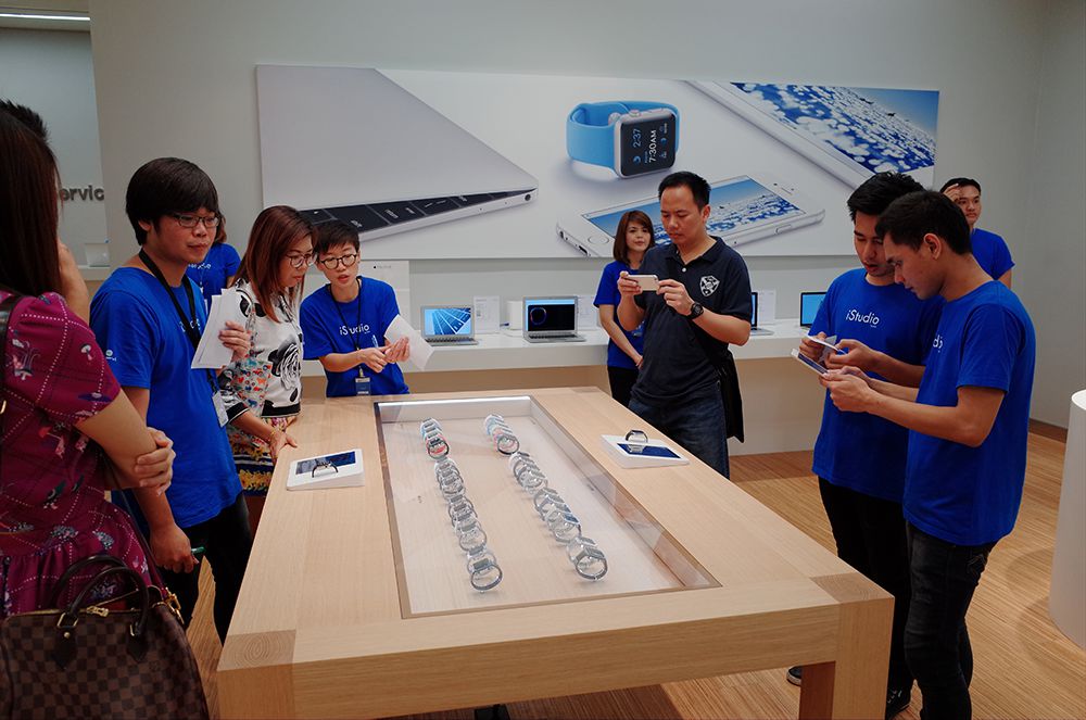 ทาง iStudio by SPVi ได้เปิดเผยกับทีมข่าวแบไต๋ว่าในช่วงเริ่มต้น 3 วันนี้ (ศุกร์ที่ 17-อาทิตย์ที่ 19) แอปเปิ้ลมีการจัดระเบียบการเข้าชมและเลือก Apple Watch คือจะให้ลูกค้าเข้าทดลองจำกัดเพียงจำนวนที่กำหนดเท่านั้น เช่นที่เซ็นทรัลพระราม 9 จะเข้าชมได้ครั้งละ 4 คน เพราะมีชุดทดลองให้ 4 ชุด เพื่อให้ผู้สนใจทุกคนได้มีโอกาสลองและเลือก Apple Watch รุ่นที่สนใจอย่างละเอียด โดยมีทีมงาน iStudio คอยคำแนะนำอย่างใกล้ชิด
