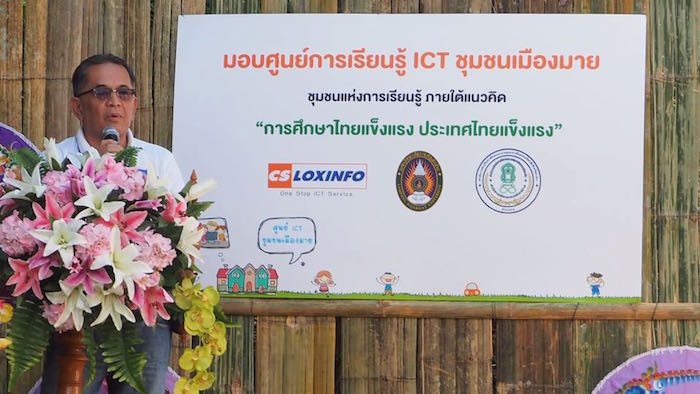 วันที่24 พฤศจิกายน 2558 บริษัท ซีเอส ล็อกซอินโฟ จำกัด(มหาชน) นำโดย ศาสตราจารย์นายแพทย์ วงศ์กุลพัทธ์ สนิทวงศ์ ณ อยุทธยา และ นายอนันต์ แก้วร่วมวงศ์ ประธานเจ้าหน้าที่บริหารและกรรมการผู้จัดการ ได้สานต่อโครงการกิจกรรมเพื่อสังคมในเขตพื้นที่จังหวัดลำปาง เพื่อเป็นการสานต่อโครงการให้มีความต่อเนื่อง ภายใต้แนวคิด “การศึกษาไทยแข็งแรง ประเทศไทยแข็งแรง” โดยมุ่งเน้นการสร้างคุณค่าและประโยชน์ร่วมกันระหว่างองค์กรและสังคม (Creating Shared Value-CSV) เป็นการนำ เทคโนโลยี ICT เข้าไปช่วยเหลือทางด้านการศึกษาของชุมชน ภายใต้โครงการ SMART CLICK คิดสร้างสรรค์แบ่งปันความรู้สู่ชุมชน ตอน : สร้างศูนย์ ICT ต่อยอดความรู้มุ่งสู่ชุมชน โดยได้รับความร่วมมือจากคณะอาจารย์และนักศึกษา สาขาวิชาวิศวกรรมซอฟต์แวร์ คณะเทคโนโลยีอุตสาหกรรม มหาวิทยาลัยราชภัฎลำปาง และคณะอาจารย์ สำนักงานส่งเสริมการศึกษานอกระบบและการศึกษาตามอัธนาศัย (กศน.) อำเภอแจ้ห่ม จังหวัดลำปาง เข้ามาเป็นพันธมิตรในการจัดทำโครงการดังกล่าว โดยคัดเลือก ชุมชนตำบลเมืองมาย จังหวัดลำปาง เป็นชุมชนแรก เนื่องจากความพร้อมของชุมชน รวมทั้งคณะอาจารย์ กศน.ตำบลเมืองมาย ที่มีศักยภาพและความรู้ความสามารถ ที่จะใช้งานทางด้านICT ได้อย่างมีประสิทธิภาพ ซึ่งจะเป็นผลดีที่ก่อให้เกิดประโยชน์แก่คนในชุมชน