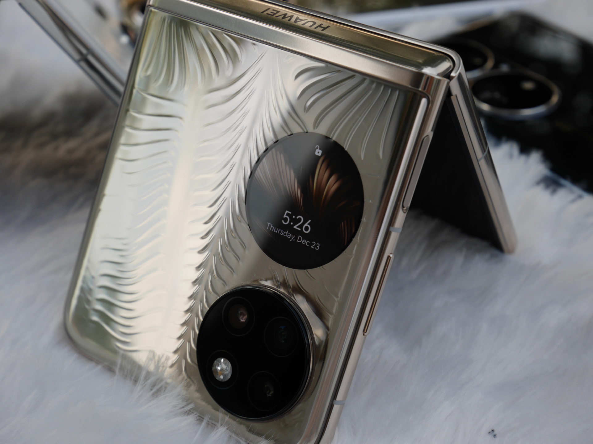 Huawei P50 Pocket สมาร์ตโฟนจอพับดีไซน์หรู ที่จับมือกับ Iris Van Herpen ดีไซน์เนอร์ระดับโลกเบื้องหลังแบรนด์เสื้อผ้าหรูให้กับเลดี้ กาก้า ฯลฯ ออกแบบตัวเครื่องด้วยพื้นผิวภายแบบ 3D Printing โดยเมื่อพับตัวเครื่องจะมีความหนาเพียง 15.2 มม