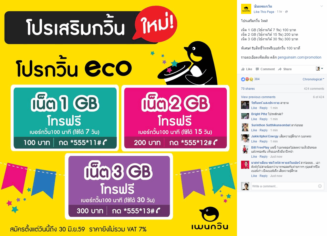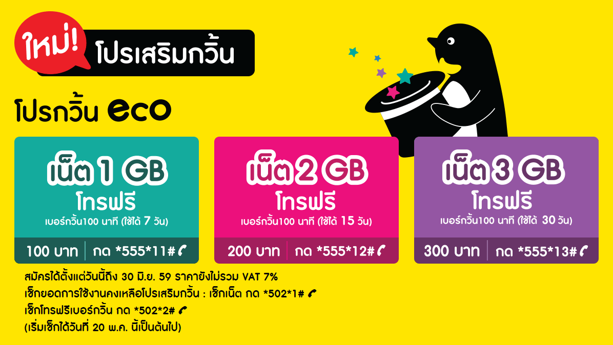 โปรโมชั่นเสริมใหม่ของซิมเพนกวินออกมา 3 โปรคือ