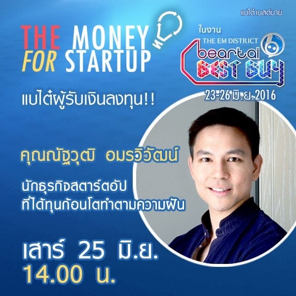 - 14.00 – 15.00 น. The Money for Startup พูดคุยกับคุณณัฐวุฒิ อมรวิวัฒน์ ผู้บริหารด้านการพัฒนาธุรกิจบรอดแบรนด์และอินเทอร์เน็ตด้วยประสบการณ์นับ 10 ปี