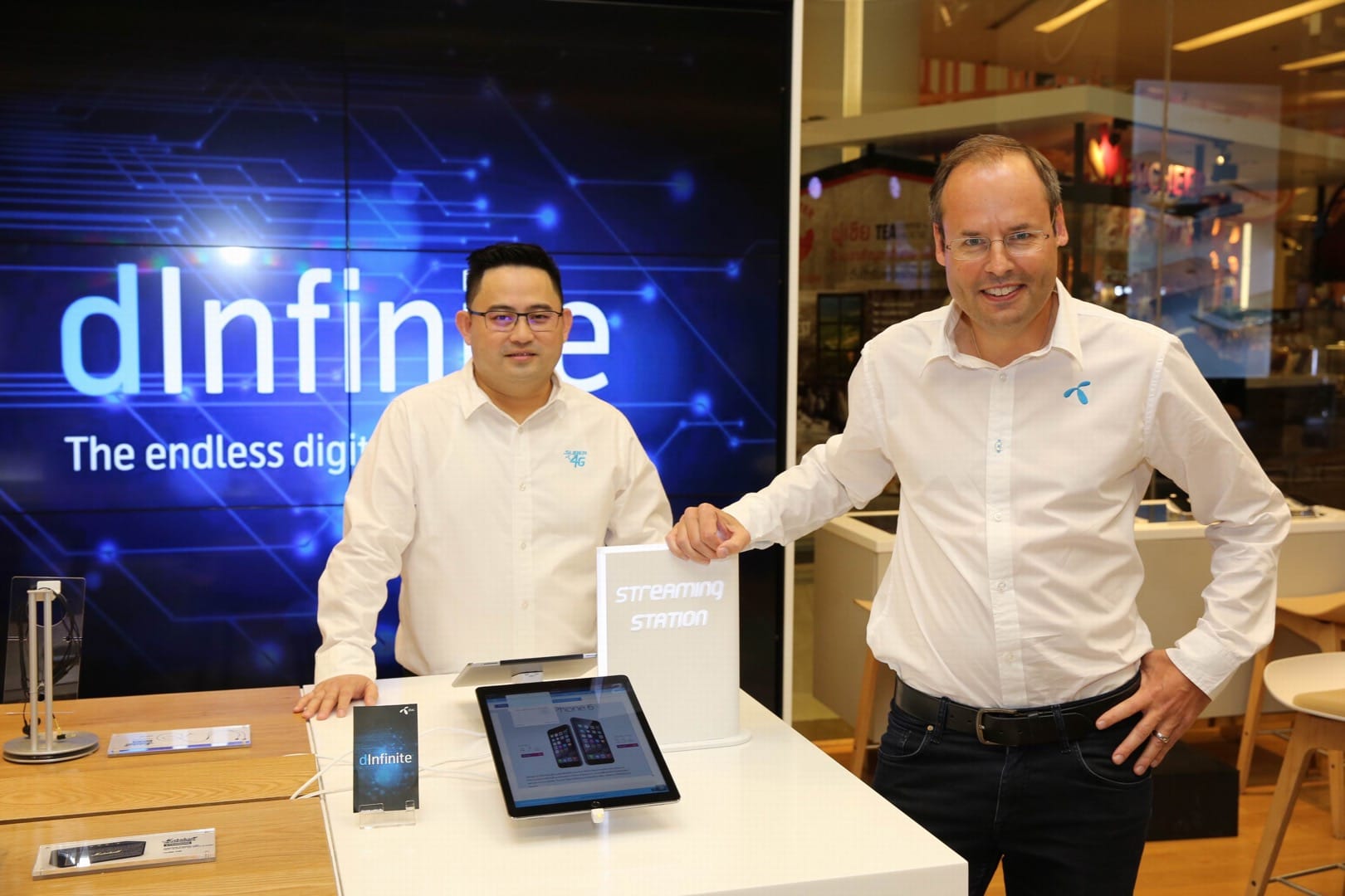 “ดีอินฟินิท” (dInfinite) นำเสนอดิจิทัลเซอร์วิซแฟลกชิพสโตร์รูปแบบใหม่ภายใต้คอนเซ็ปต์ dInfinite The endless digital experiences ประสบการณ์ดิจิทัลไลฟ์สไตล์แบบไม่สิ้นสุด โดยชูความพิเศษของดิจิทัลเซอร์วิซ แฟลกชิพสโตร์รูปแบบใหม่นี้ ตั้งแต่การตกแต่งร้านในรูปแบบที่พิเศษยิ่งขึ้น โดยเลือกใช้มัณฑนากรมืออาชีพเจ้าของผลงานการออกแบบศูนย์บริการ “iStudio” ทั่วโลกอย่าง นายเดวิด เจ. เมเยอร์ ดีไซเนอร์ระดับโลก ชาวอเมริกันจาก บริษัท ไวท์สเปซ (WHITESPACE) จำกัด มาช่วยสร้างสรรค์รูปแบบการตกแต่ง “ดีอินฟินิท” (dInfinite) โดยคงความเป็นเอกลักษณ์ของแบรนด์ดีแทคด้วยการเลือกใช้โทนสีฟ้า ผสานเข้ากับการใช้วัสดุ ที่เลือกใช้ไม้สีอ่อน เติมเต็มความรู้สึกอบอุ่นและสบายใจทุกครั้งที่เข้ามาใช้บริการ พร้อมแทรกความทันสมัยด้วยการใช้วอลเปเปอร์ที่ทำจากวัสดุแบบไฮกลอสให้ความเรียบและมันวาว ตอกย้ำความเป็นดิจิทัลในทุกรายละเอียด ทำให้ลูกค้าดีแทคที่เข้ามาใช้บริการรู้สึกเหมือนอยู่บ้านที่เต็มไปด้วยบรรยากาศของดิจิทัลไลฟ์สไตล์อย่างที่ไม่เคยสัมผัส รวมทั้งการบริการที่ล้ำสมัยจากพนักงานดีแทคทุกคนและความทันสมัยของนวัตกรรมและเทคโนโลยีที่อยู่รอบด้าน