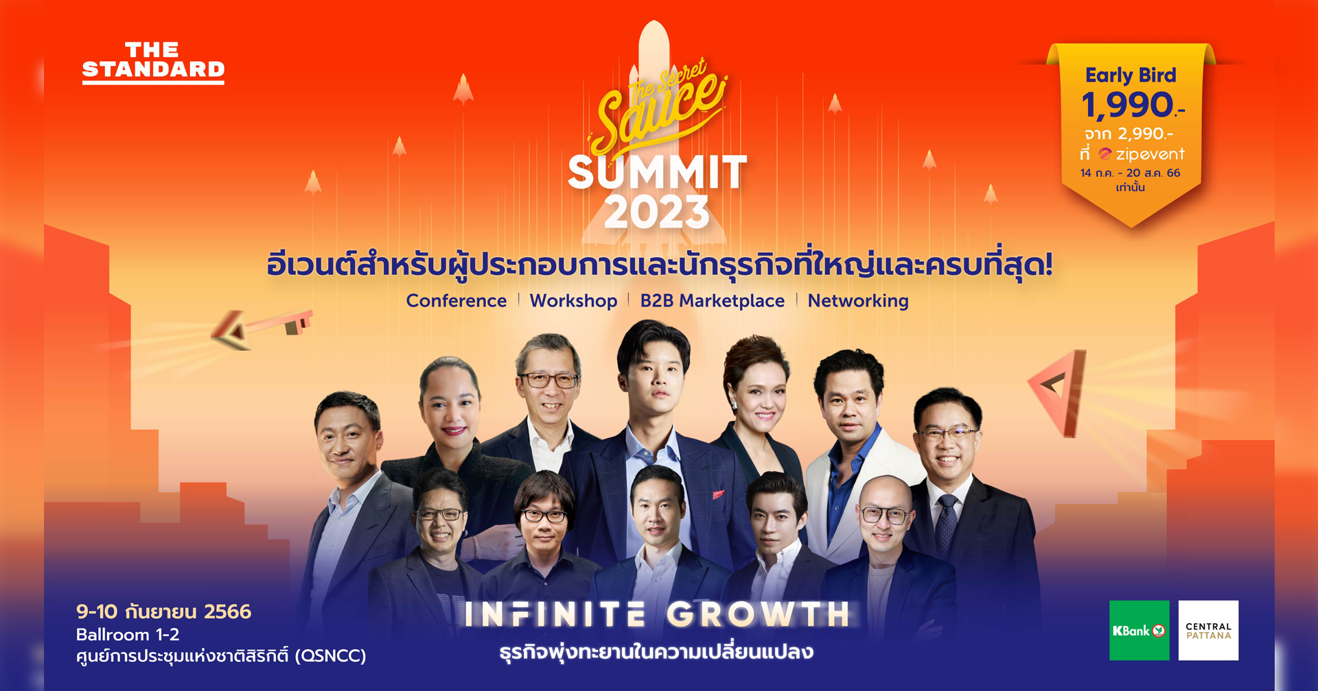 The Secret Sauce รายการสำหรับผู้นำและนักธุรกิจแห่งศตวรรษที่ 21 จากสำนักข่าวออนไลน์ THE STANDARD กำลังจะจัดอีเวนต์ใหญ่ประจำปีที่มีชื่อว่า The Secret Sauce Summit 2023 อีเวนต์สำหรับผู้ประกอบการและนักธุรกิจที่ใหญ่และครบที่สุด! กับธีม Infinite Growth ธุรกิจพุ่งทะยานในความเปลี่ยนแปลง ในวันเสาร์และอาทิตย์ที่ 9-10 กันยายน 2566 เวลา 08.00-18.00 น. ณ Ballroom 1-2 ศูนย์การประชุมแห่งชาติสิริกิติ์ (QSNCC)