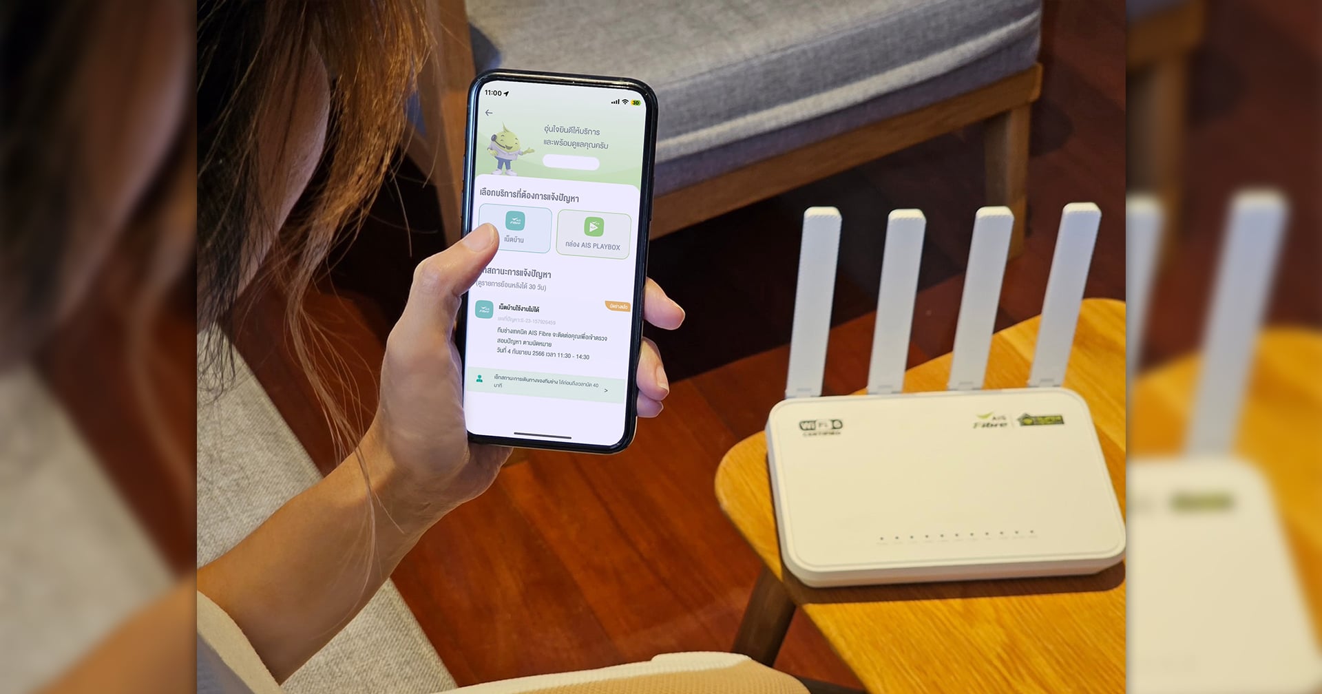 AIS Fibre ตอกย้ำเป้าหมายการทำงานเพื่อยกระดับและสร้างมาตรฐานการให้บริการเน็ตบ้าน ผ่านการให้คำมั่นสัญญาที่พร้อมดูแลและแก้ไขปัญหาการใช้งานให้ลูกค้าตลอด 24 ชั่วโมง รวมถึงการนำเทคโนโลยีดิจิทัล และ AI มาพัฒนาสู่การเป็น Intelligence Service หรือบริการอัจฉริยะเพื่อให้ลูกค้าสามารถใช้งานได้อย่างสะดวกบนแอปพลิเคชัน myAIS ด้วยระบบตรวจสอบปัญหา (Smart Diagnostics) ที่มีฟังก์ชันในการวิเคราะห์และแก้ไขปัญหาด้านการใช้งาน นัดหมายช่าง ติดตามสถานะการแก้ปัญหา