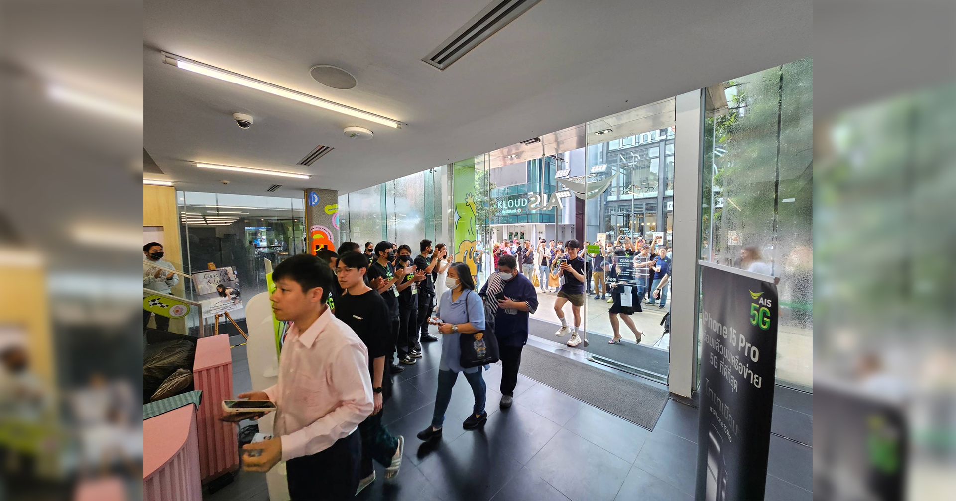 เพื่อให้ลูกค้าได้สัมผัสการใช้งานบนเครือข่ายอัจฉริยะ AIS 5G อันดับ 1 เร็วสุด ครอบคลุมที่สุดทั่วไทย ชาว AIS ตั้งใจส่งต่อรักครั้งใหม่แบบ Day & Night ในการจำหน่าย iPhone 15 วันแรก ให้ลูกค้าที่สั่งจองล่วงหน้ากับ AIS สามารถรับเครื่องได้ทั้งวันทั้งคืน โดยปักหมุดใจกลางเมืองย่านสยามสแควร์ที่ช็อป AIS SIAM อำนวยความสะดวกให้ลูกค้ายิงยาวต่อเนื่อง 36 ชั่วโมง มากไปกว่านั้นยังเพิ่มจุดบริการ Grab & Go ให้ลูกค้าที่จองผ่าน AIS Online Store สามารถรับเครื่องได้แบบง่ายๆ โดยไม่ต้องลงจากรถได้เลย พิเศษไปกว่านั้นเอาใจสายคนเลิกงานดึก สำหรับลูกค้าที่มารับเครื่องช่วงกลางคืน AIS มีสเปเชียลเซอร์ไพรส์กับหม่าล่าเสียบไม้รสเด็ด จากร้านดัง เพิ่มความซี๊ดซ๊าดรอบดึกระหว่างการรอรับเครื่อง