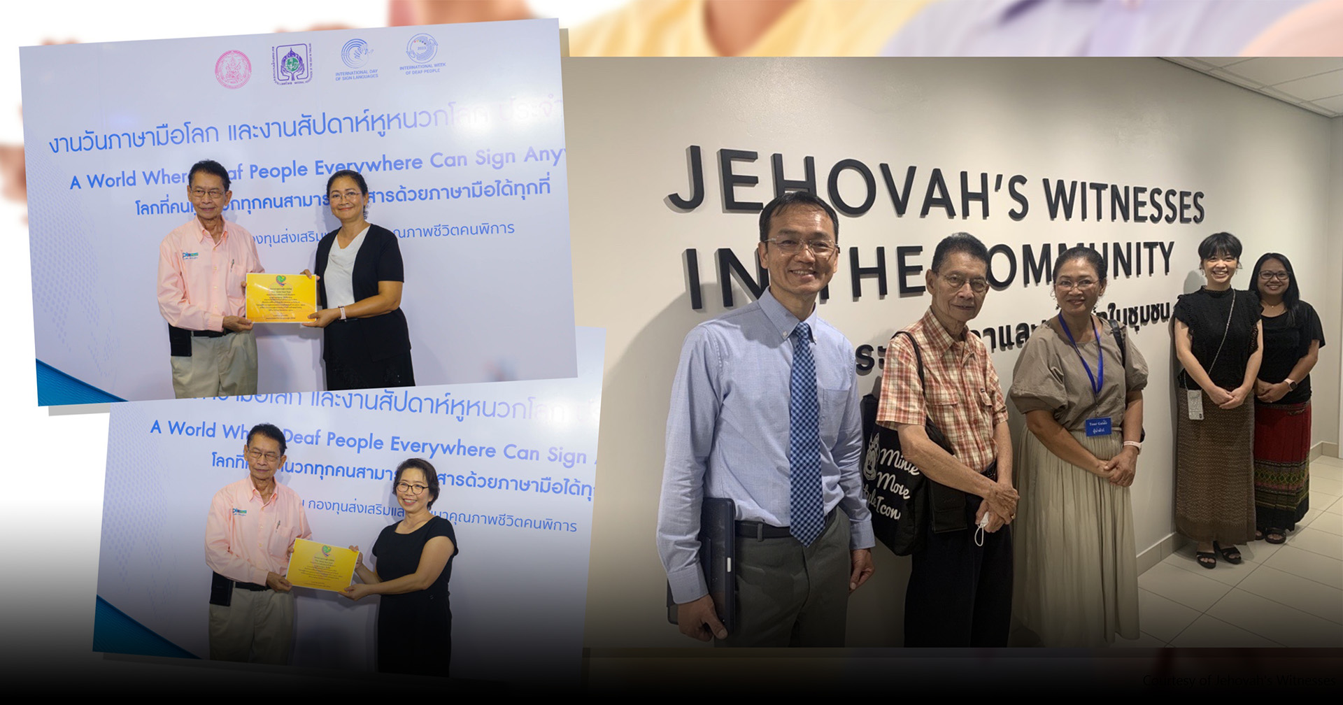พยานพระยะโฮวา 2 คนเป็นหนึ่งในกลุ่มคนที่ได้รับเลือกให้มารับรางวัลนี้ คุณกำพล สุวรรณรัตเป็นผู้เลือกคนที่มารับรางวัล คุณกำพลเป็นประธานคณะกรรมการชมรมคนหูหนวกอาวุโสไทย และเป็นผู้ก่อตั้งมูลนิธิส่งเสริมและพัฒนาคนหูหนวกไทย เขาบอกว่า “ผมขอมอบประกาศนียบัตรให้กับพยานพระยะโฮวาที่เป็นล่ามที่มีผลงานดีเด่น พวกเขาช่วยสังคมคนหูหนวกให้พัฒนาไปในทางที่ดี ล่ามทั้งสองคนช่วยให้คนหูหนวกสามารถดูแลตัวเองต่อไปในวันข้างหน้า พวกเขาเป็นล่ามที่มีน้ำใจและคอยให้ความรู้กับคนหูหนวก”