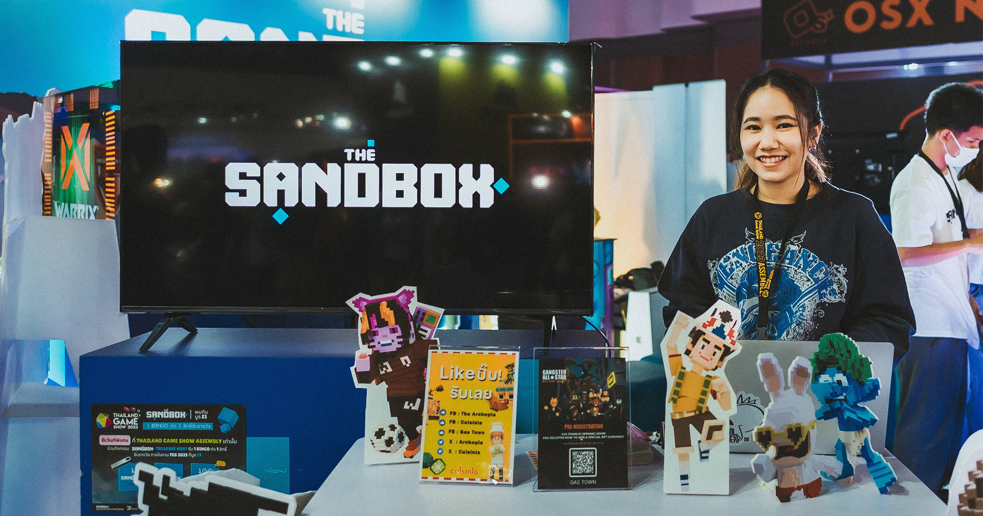ภายในบูธ The Sandbox (ประเทศไทย) พร้อมไฮไลท์โชว์คอนเทนต์การสร้างเกมจากทีมงานสร้างคนไทยอย่าง BlockDork Studio, Archopia Studio, Demo Corporation, Kratist Studio, D.OASIS, SandJa และโปรเจกต์แบรนด์ดัง อาทิ แบรนด์กีฬาเสื้อทีมชาติไทยวอริกซ์ (WARRIX Sport), ก้านกล้วย โดยทีมงาน Dev-A กันตนา ผู้อยู่เบื้องหลังภาพยนตร์ฟอร์มยักษ์ระดับโลก และ Mittaria โดย T&B Media Global (Thailand) เจ้าของลิขสิทธิ์การ์ตูนไทยที่โด่งดังอย่าง เชลล์ดอน (Shelldon)