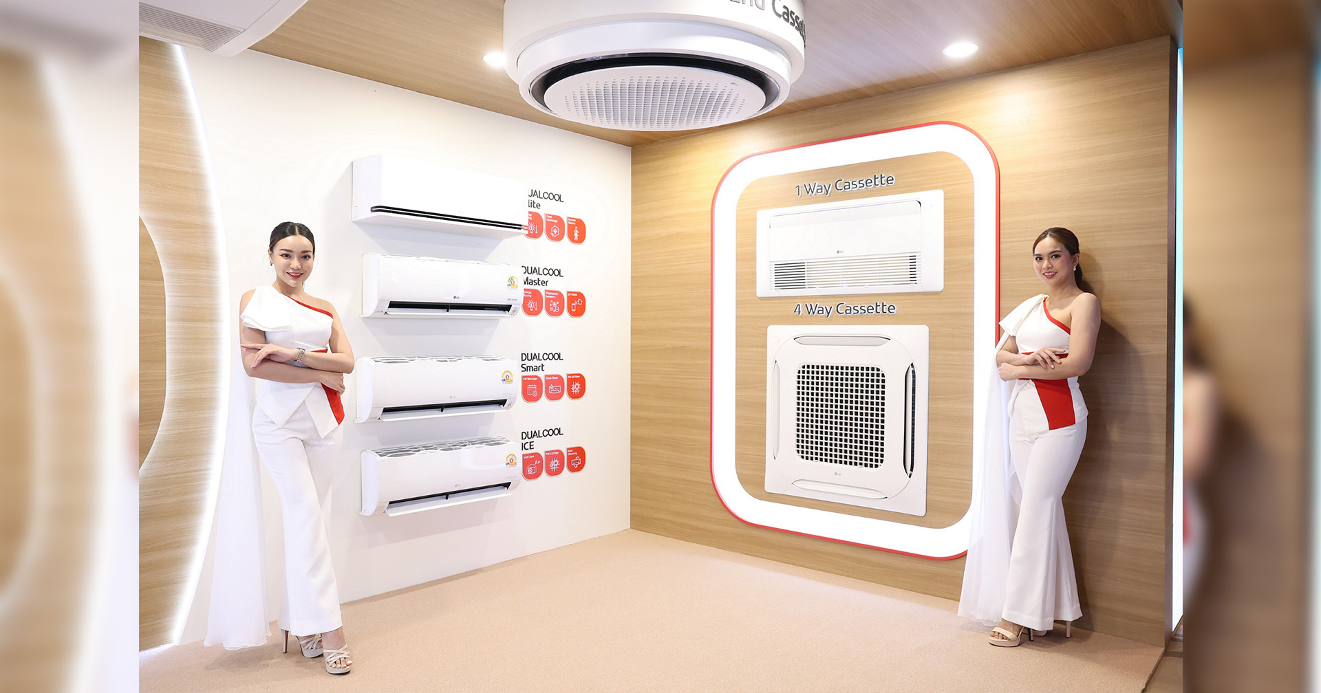 นอกจากนี้ จากเทรนด์การใช้พื้นที่อยู่อาศัยที่เปลี่ยนแปลงไปหลังจากการแพร่ระบาดของโควิด-19 ที่หลาย ๆ องค์กรสนับสนุนการทำงานจากที่บ้านหรือที่ใดก็ได้ แอลจีได้พัฒนาเครื่องปรับอากาศเชิงพาณิชย์ที่สามารถนำมาใช้ภายในบ้าน ออฟฟิศ คาเฟ่ หรือสถานที่ต่าง ๆ โดดเด่นด้วยดีไซน์ที่หลากหลาย ตอกย้ำการเป็นผู้นำนวัตกรรมเครื่องปรับอากาศที่นำเสนอทุกคำตอบของระบบปรับอากาศ หรือ ‘Total Air Solution’ ได้อย่างครบครัน ประกอบด้วย เครื่องปรับอากาศเชิงพาณิชย์ 5 รุ่น ได้แก่ เครื่องปรับอากาศแบบฝังฝ้าพร้อมกระจายลมรอบทิศทาง (Round Cassette), เครื่องปรับอากาศแบบฝังฝ้า 4 ทิศทาง (4-Way Cassette), เครื่องปรับอากาศแบบฝังฝ้า 1 ทิศทาง (1-Way Cassette), เครื่องปรับอากาศแบบแขวนใต้ฝ้า (Convertible) เครื่องปรับอากาศแบบตู้ตั้งพื้น (Floor Standing) และ เครื่องปรับอากาศแบบท่อลมซ่อนใต้ฝ้า (Duct)