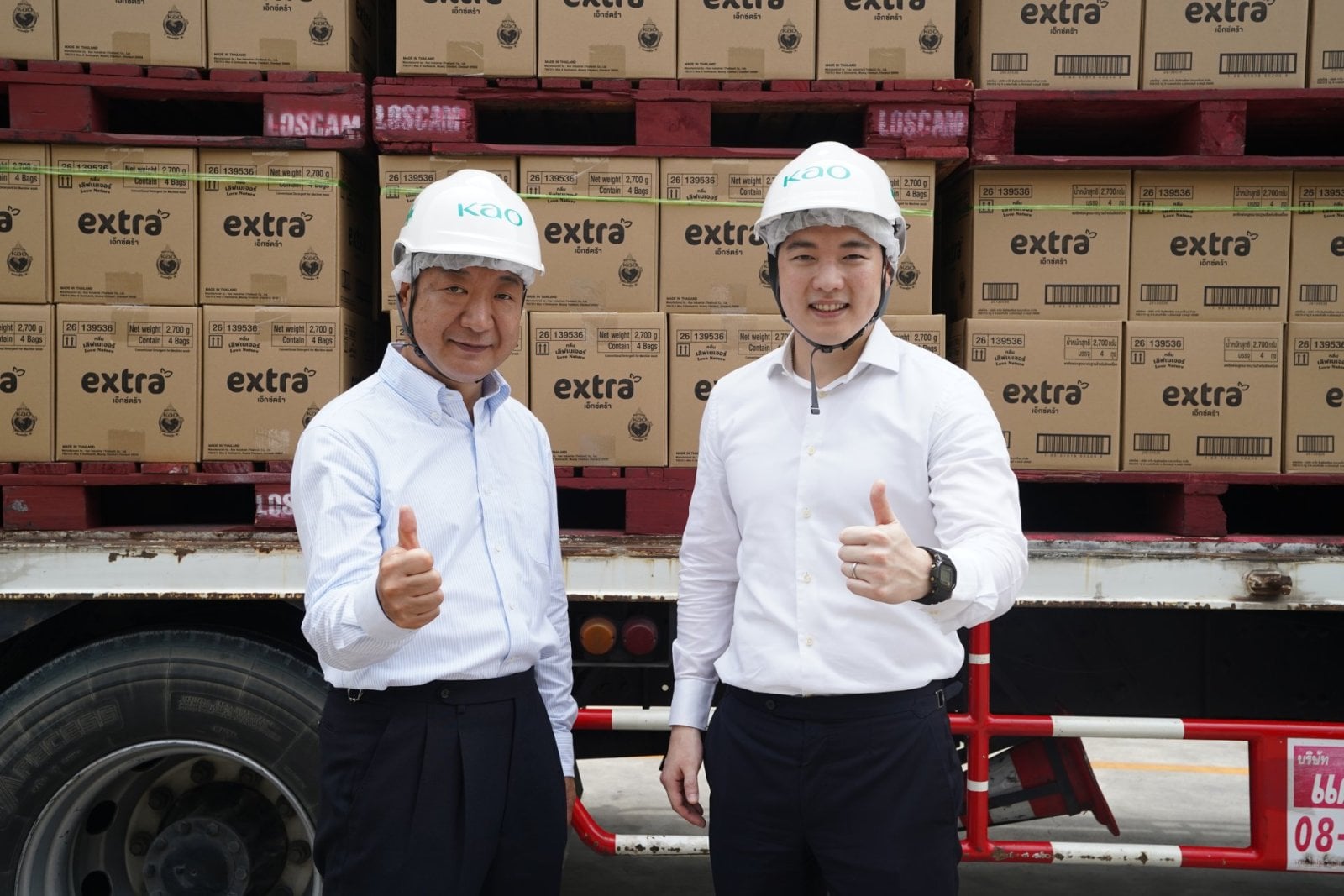 (ขวา) นายอากิระ นิชิมากิ ประธานกรรมการบริษัท คาโอ อินดัสเตรียล (ประเทศไทย) จำกัด