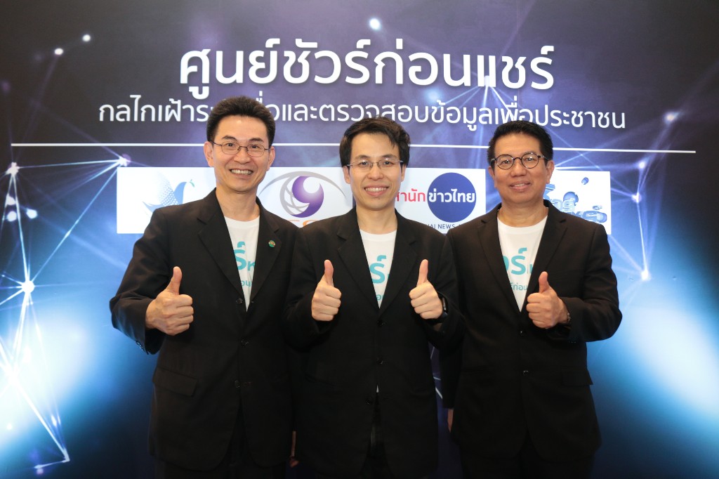 “สำนักข่าวไทย อสมท” ร่วมกับ “กองทุนพัฒนาสื่อปลอดภัยและสร้างสรรค์” และ “หน่วยงานองค์กรพันธมิตร” เปิดตัว “ศูนย์ชัวร์ก่อนแชร์” โดยมี นายเขมทัตต์ พลเดช ผู้อำนวยการใหญ่ อสมท และ คุณวสันต์ ภัยหลีกลี้ ผู้จัดการกองทุนพัฒนาสื่อปลอดภัยและสร้างสรรค์ ร่วมในพิธีเปิดงาน
