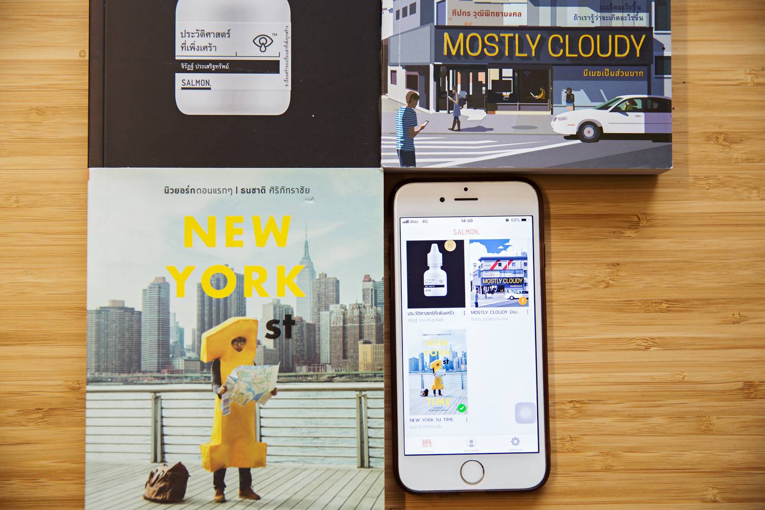 จุดเด่นของแอป SALMON. และ BUNBOOKS คือหนังสือจะถูกจัดให้เหมาะสำหรับการอ่านบนหน้าสมาร์ทโฟน คือ 1 บทของหนังสือจะอยู่ในหน้าเดียว แล้วไถตามยาวลงไปอ่านเรื่อยๆ เหมือนอ่านหน้าเว็บ พอจบบทก็ปัดขวาเพื่ออ่านบทต่อไป ซึ่งภายในแต่ละบทก็มีภาพประกอบที่จัดรูปแบบเหมือนอ่านเว็บมือถือ (รูปอยู่ตรงกลางคั่นระหว่างย่อหน้า) ไม่ได้จัดรูปชิดซ้าย-ขวาเหมือนหนังสือ ทำให้เหมาะสำหรับจอที่มีขนาดเล็ก แถมยังมีไฟล์สื่อต่างๆ ประกอบเข้าไปและปุ่มสารบัญที่ใช้ง่ายด้วย