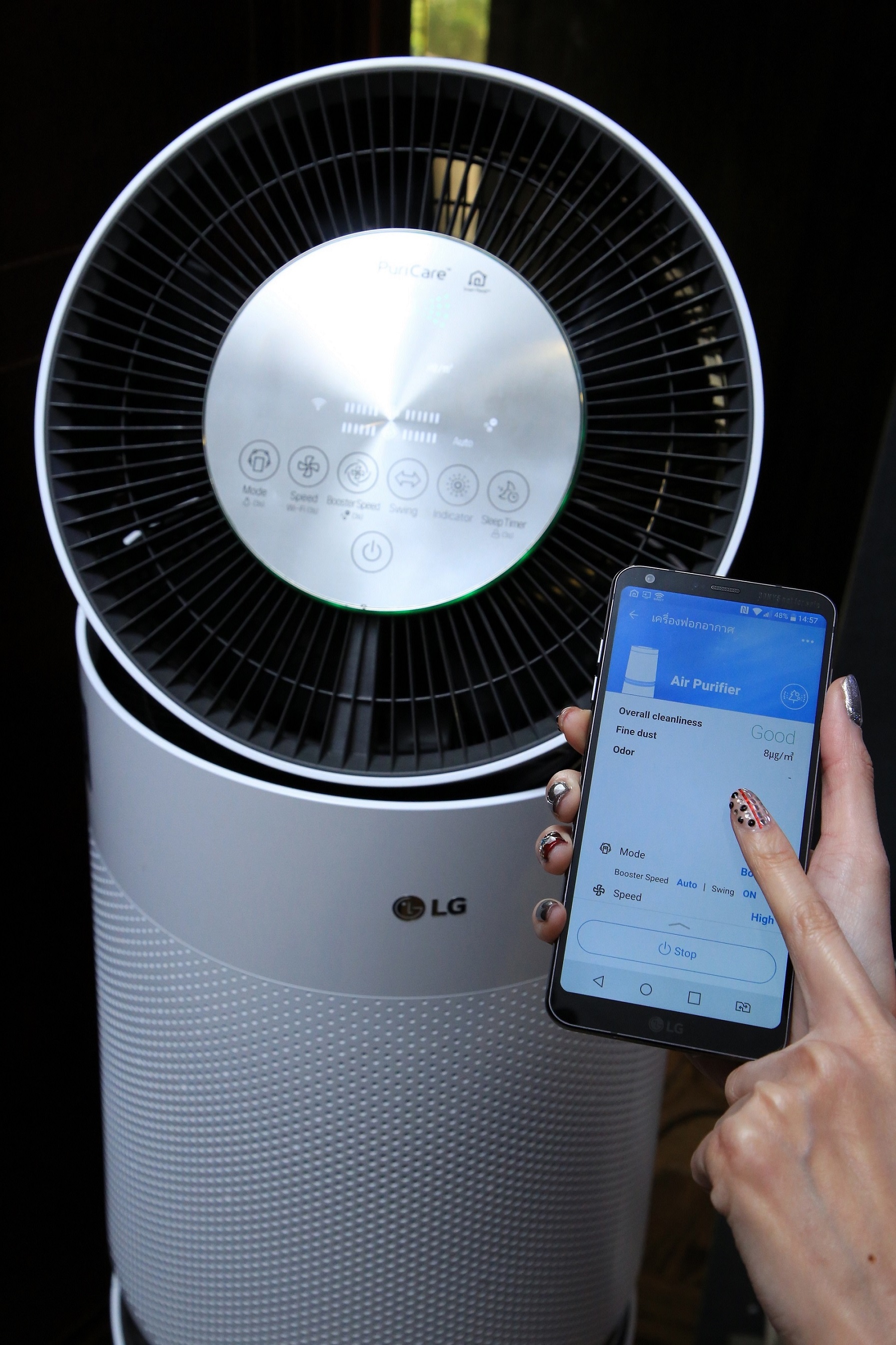 จากมลภาวะอากาศในปัจจุบันทั้งนอกบ้านและในบ้านส่งผลต่อสุขภาวะของคนไทย ซึ่งมีแนวโน้มของการเป็นโรคเกี่ยวกับระบบทางเดินหายใจเพิ่มขึ้นเรื่อย ๆ โดยเฉพาะภูมิแพ้ การสร้างอากาศบริสุทธิ์ภายในบ้านให้แก่สมาชิกทุกคนในครอบครัวจึงเป็นเรื่องสำคัญ และสามารถทำได้อย่างง่ายดายด้วยนวัตกรรมล่าสุดของ เครื่องฟอกอากาศ LG PuriCare (แอลจี เพียวริแคร์) ที่ได้รับการออกแบบเป็นพิเศษเพื่อประสิทธิภาพสูงสุดในการมอบอากาศบริสุทธิ์ภายในบ้านหรืออาคาร สามารถขจัดสารมลพิษที่มองไม่เห็น จากระบบฟอกอากาศอย่างสมบูรณ์ถึง 6 ขั้นตอน นอกจากจะสามารถกรองอากาศภายในบ้านได้โดยรอบ 360 องศา และยังสามารถควบคุมการใช้งานได้ทุกที่ ทุกเวลาแม้จะอยู่นอกบ้านด้วยแอปพลิเคชัน Smart ThinQ™