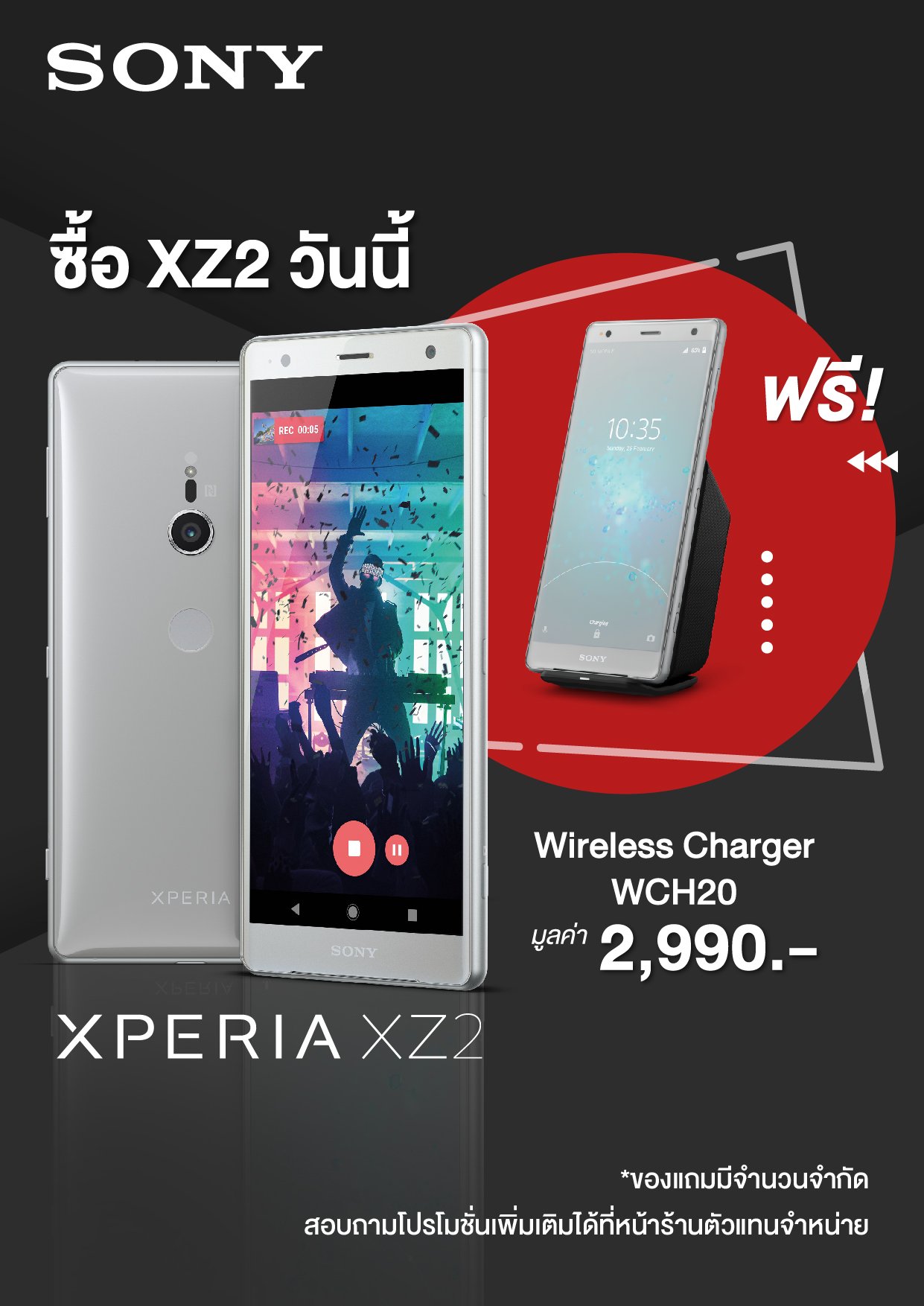 - Xperia XZ2 ราคาเพียง 21,990 บาท รับฟรี แท่นชาร์จไร้สายรุ่น WCH20 Wireless Charger มูลค่า 2,990 บาท (ของแถมมีจำนวนจำกัด)
