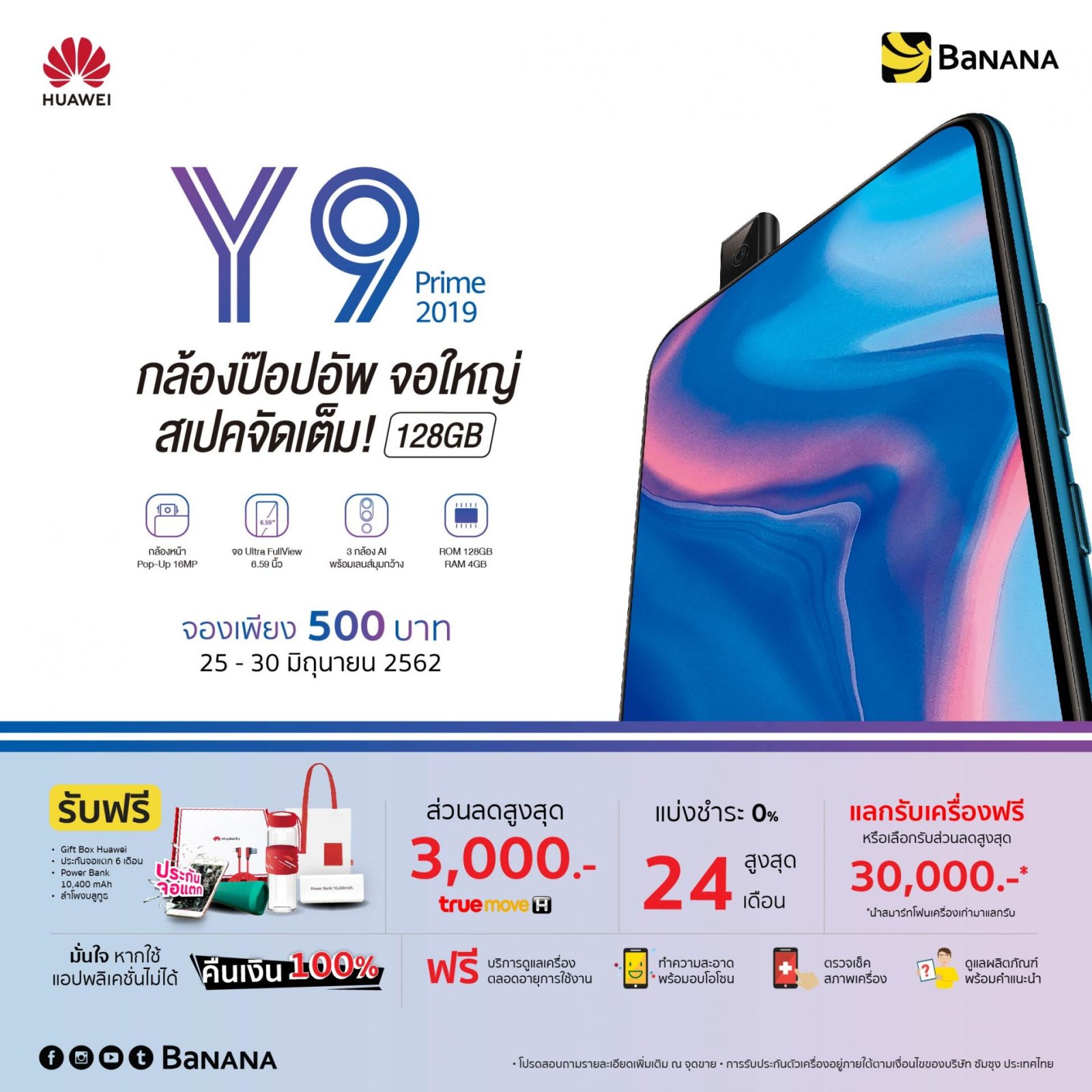 รับฟรี Huawei Gift Box มูลค่า 990 บาท และหูฟัง Headset Anitech AK60-GR (คละสี) มูลค่า 390 บาทเมื่อซื้อ Huawei Y9 Prime 2019