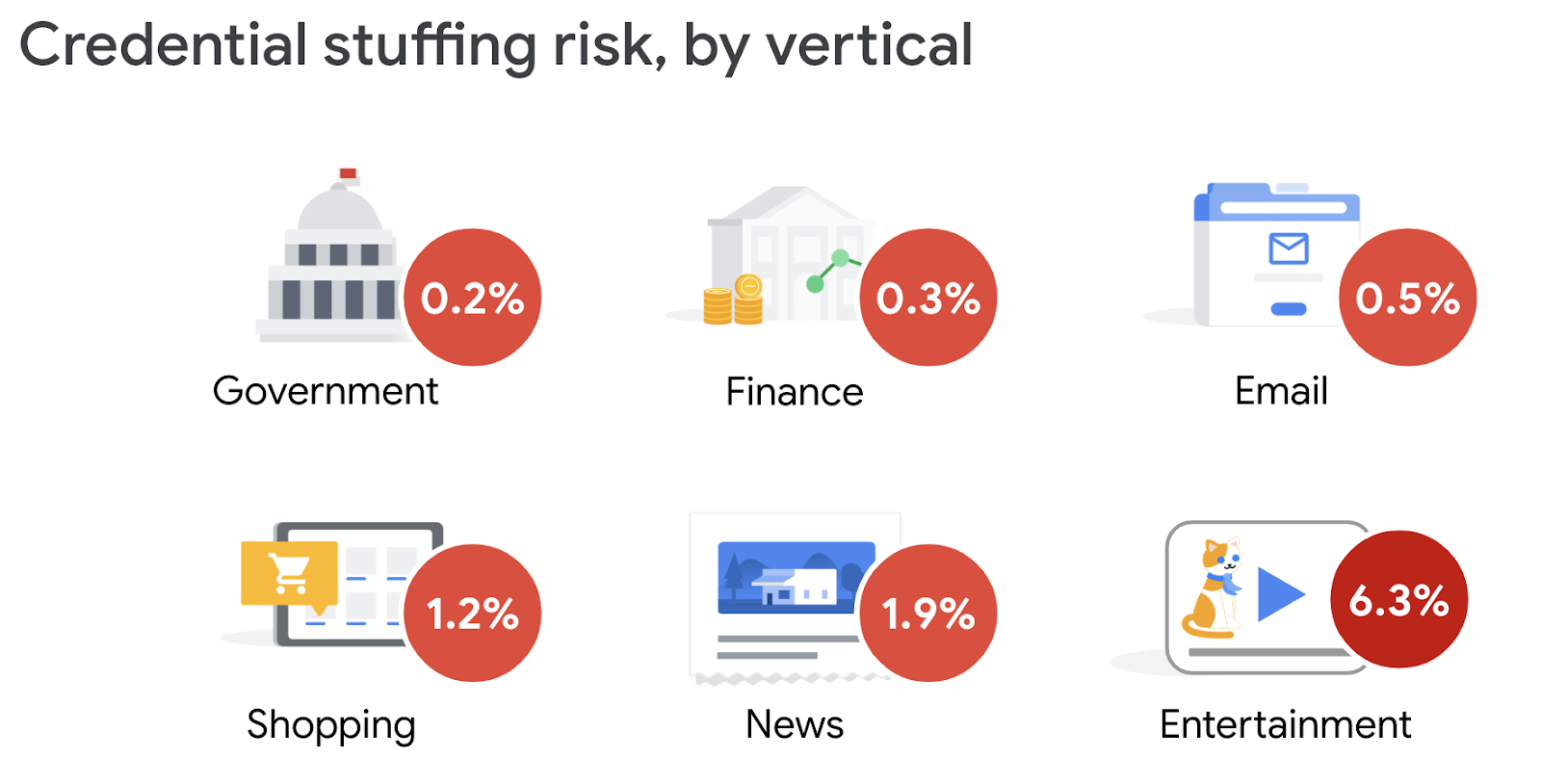 ไฮแจ็กเกอร์พยายามลงชื่อเข้าใช้เว็บไซต์ต่างๆ อยู่เป็นประจำ โดยใช้ข้อมูลที่ได้จากการละเมิดข้อมูลส่วนบุคคล ความเสี่ยงนี้จะหายไปหากคุณใช้รหัสผ่านที่คาดเดาได้ยากและไม่ซ้ำใครสำหรับบัญชีทั้งหมดที่มีอยู่ของคุณ จากการตรวจสอบและส่งข้อมูลโดยไม่ระบุชื่อที่รายงานโดยส่วนขยาย Password Checkup พบว่าผู้ใช้ได้นำข้อมูลประจำตัวที่เคยถูกละเมิดและไม่ปลอดภัยกลับมาใช้ใหม่สำหรับบัญชีการเงิน บัญชีหน่วยงานภาครัฐ และอีเมลที่ละเอียดอ่อนที่สุดของพวกเขา ความเสี่ยงนี้แพร่หลายมากขึ้นในเว็บไซต์ช้อปปิ้ง (ซึ่งผู้ใช้อาจบันทึกรายละเอียดบัตรเครดิตไว้) เว็บไซต์ข่าว และเว็บไซต์ความบันเทิงต่างๆ ในความเป็นจริง นอกเหนือจากเว็บไซต์ยอดนิยมแล้ว ผู้ใช้มีแนวโน้มที่จะนำรหัสผ่านที่มีช่องโหว่กลับมาใช้มากขึ้นอีก 2.5 เท่า ทำให้บัญชีของพวกเขาเสี่ยงต่อการถูกขโมย