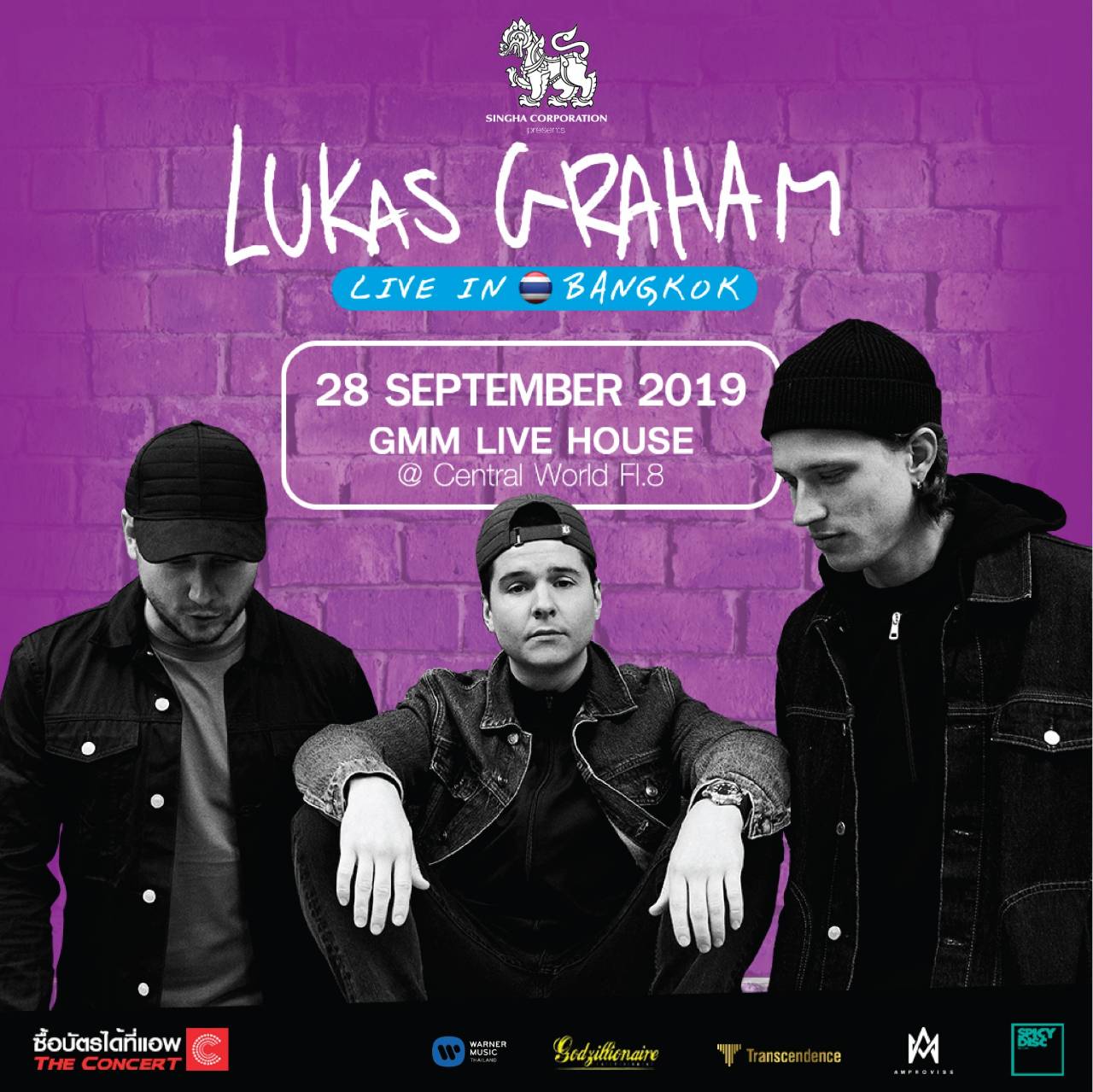 Lukas Graham วงดนตรีจากเดนมาร์ก ที่แฟนๆ ชาวไทยต่างตั้งตารอคอยชมการแสดงสดคอนเสิร์ตครั้งแรกในประเทศไทย ซึ่งงานนี้ได้ค่ายดนตรีใหญ่อย่าง สไปซี ดิสก์ พร้อมนำโชว์คอนเสิร์ตสดๆของพวกเขามาให้แฟนเพลงชาวไทยได้สัมผัสกันใน Singha Corporation Presents “LUKAS GRAHAM Live in Bangkok 2019” ด้วยท่วงทำนองอันไพเราะสวยงามจากเสียงเปียโน และการเรียบเรียงดนตรีที่ให้ความรู้สึกอบอุ่น บวกกับเสียงร้องที่เต็มอารมณ์ความรู้สึก ส่งให้ “7 Years” เป็นอีกเพลงเพราะที่ได้รับความนิยมไปทั่วโลก จาก Lukas Graham ขึ้นอันดับ 1 ชาร์ตเพลงฮิตประจำสัปดาห์ของเกาะอังกฤษ ยอดวิวกำลังพุ่งทะลุ 900 ล้านวิวในเร็ว ๆ นี้นอกจากนี้ยังมีเพลงฮิตที่คนไทยชื่นชอบกันเป็นอย่างดีอีกหลายเพลงด้วยกัน อาทิ “Love Someone” เพลงหวานๆซาบซึ้งที่ฟังซ้ำก็ยิ่งไพเราะ ด้วยเนื้อหาแสดงถึงอารมณ์ความรู้สึกของผู้คนอย่างเป็นมิตร อบอุ่น เรียบง่าย และจริงใจ ที่มียอดวิวร้อนแรงกว่า 200 ล้านวิว รวมถึงเพลงที่หลายๆคนรอคอยการได้ฟังสด ๆ ซักครั้งในชีวิตอย่าง Mama Said, You’re Not There และ Drunk In The Morning รับรองได้ฟังกันอย่างเต็มอิ่มแน่นอน
