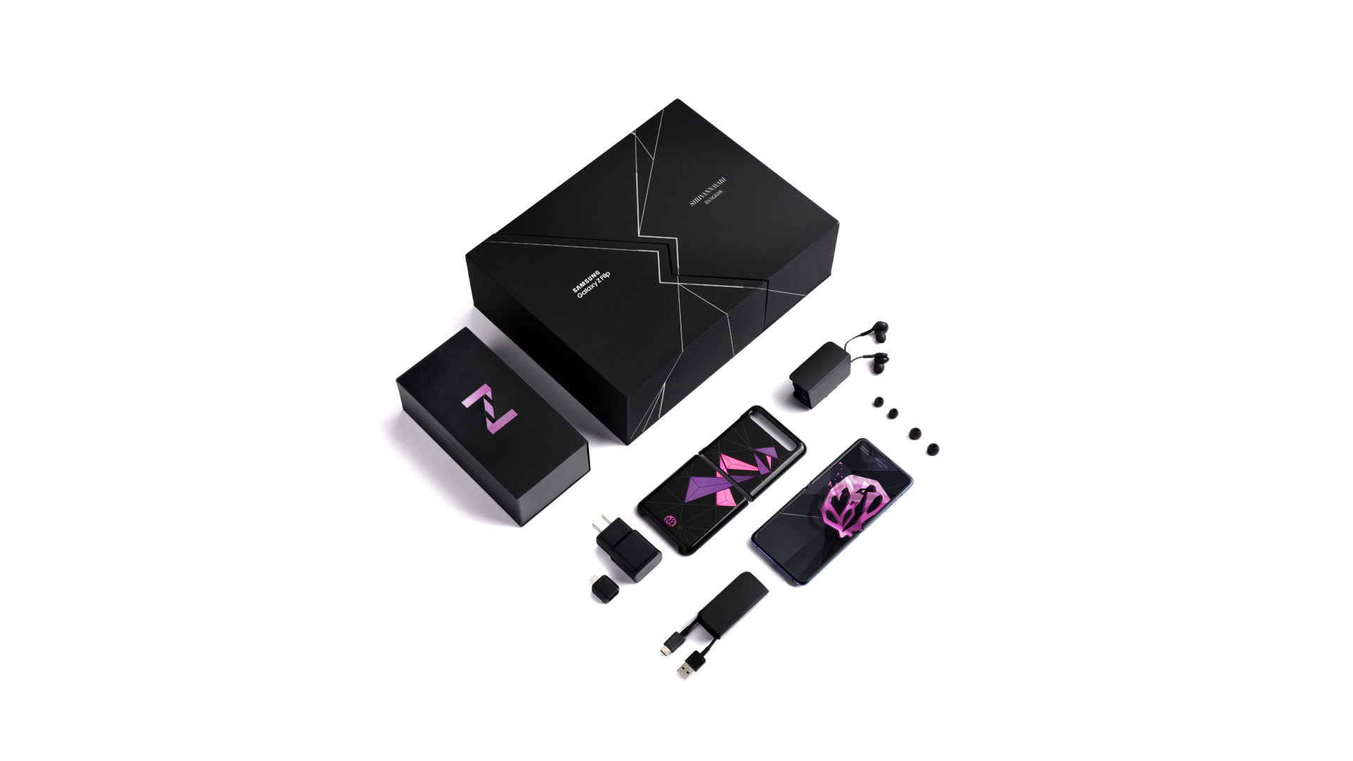 สมเด็จพระเจ้าลูกเธอ เจ้าฟ้าสิริวัณณวรี นารีรัตนราชกัญญา ทรงได้แรงบันดาลพระทัยจากลักษณะที่เหมือนกันของทั้งสอง แบรนด์ ตั้งแต่ ความโมเดิร์น ความล้ำยุคแบบฟิวเจอริสติก ไปจนถึงตัวอักษร “S” ที่เป็นอักษรนำของชื่อแบรนด์ทั้งสอง โดยองค์ดีไซน์เนอร์ได้ทรงเริ่มต้นงานทรงออกแบบด้วยการนำเอาลายเส้นของตัวอักษร S มาวางเป็นลวดลายกราฟฟิกแบบพลิกกลับไปมา (Flipped graphic) ทำให้ลวดลายกราฟฟิกที่ได้มีลักษณะคล้ายรูปทรงตัว Z ซึ่งสัมพันธ์กับชื่อรุ่นของ Galaxy Z Flip หลังจากนั้น องค์ดีไซน์เนอร์จึงทรงนำเอาลายเส้นกราฟฟิกดังกล่าวมาทรงสร้างสรรค์ต่อจนออกมาเป็นลายเส้นปริซึม (PRISM) ที่ตัดกันไปมาโดยแฝงไว้ด้วยตัวอักษร Z อย่างแยบยล อันเป็นการผสมผสานเอกลักษณ์แห่งงานดีไซน์ของทั้งสองแบรนด์ไว้ได้อย่างลงตัว