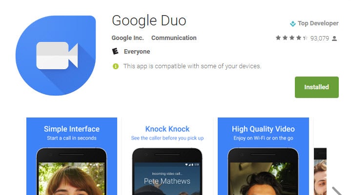 เมื่อกลางเดือนที่ผ่านมา Google ได้ปล่อยแอป Google Duo ออกมาให้ใช้กันได้เรียบร้อยแล้ว และภายหลังเพียงไม่กี่วันแอปนี้ก็ได้ขึ้นติดอันดับ Top Free อันดับที่ 1 ในสหรัฐอเมริกาด้วย