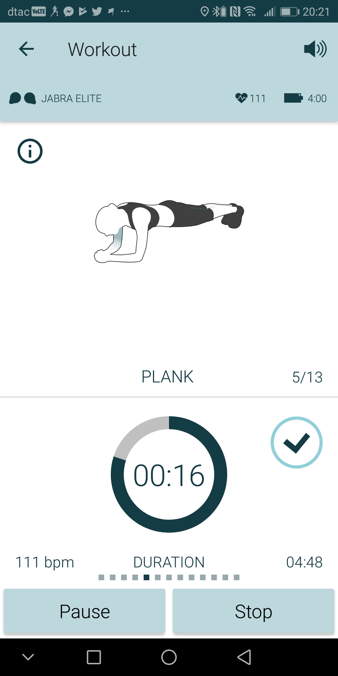 และระหว่างที่ออกกำลังตามท่าที่แอประบุ ระบบยังตรวจสอบการเคลื่อนไหวที่หูฟังเพื่อนับการเคลื่อนไหวของเราว่าทำตามจำนวนครั้งที่กำหนดแล้วหรือยัง (วิดพื้นไป 20 มันก็นับจังหวะขึ้นลง 20 ครั้ง) ถึงเป็นการนับคร่าวๆ ผู้ใช้สามารถเคลื่อนไหวหลอกมันได้ง่ายๆ แต่ก็ทำให้การออกกำลังกายตามท่าสะดวกดีครับ