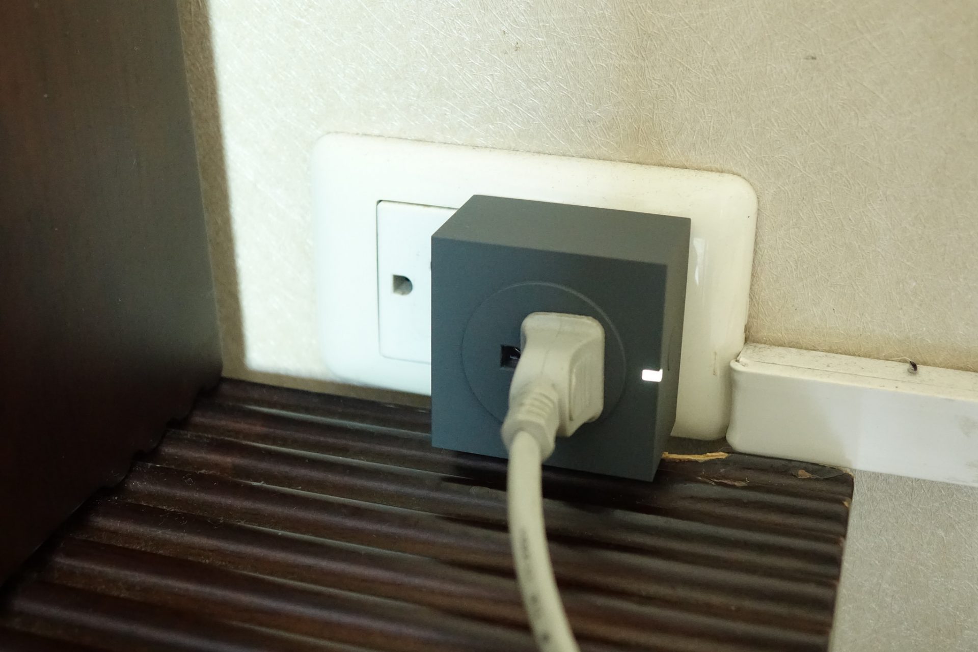 จุดแรกที่เราชอบเกี่ยวกับปลั้กไฟตัวนี้คือดีไซน์และวัสดุครับ ที่ดูโมเดิร์น ดูแข็งแรง ถ้าอยากติดตั้งแล้วไม่ให้สะดุดตามากนักก็เลือกเป็นสีเทา แต่ถ้าอยากทำให้เป็นเหมือนของตกแต่งบ้าน ก็มีเป็นสีแดงเข้มๆ ให้เลือก เวลาใช้งานก็มีดวงไฟติดขึ้นที่ตัวปลั้กด้วย น่ารักดีครับ แต่จุดสังเกตของดีไซน์อยู่ที่ช่องเสียบปลั้กนั้นเป็นแบบขาแบนอย่างเดียว ถ้าใช้กับอุปกรณ์ที่เป็นปลั้กขากลมก็ต้องเสียบผ่านตัวแปลงขาอีกที แล้วก็ออกแบบมาสำหรับใช้งานในบ้านอย่างเดียวนะครับ เอาไปตากแดดตากฝนนอกบ้านไม่ได้นะ