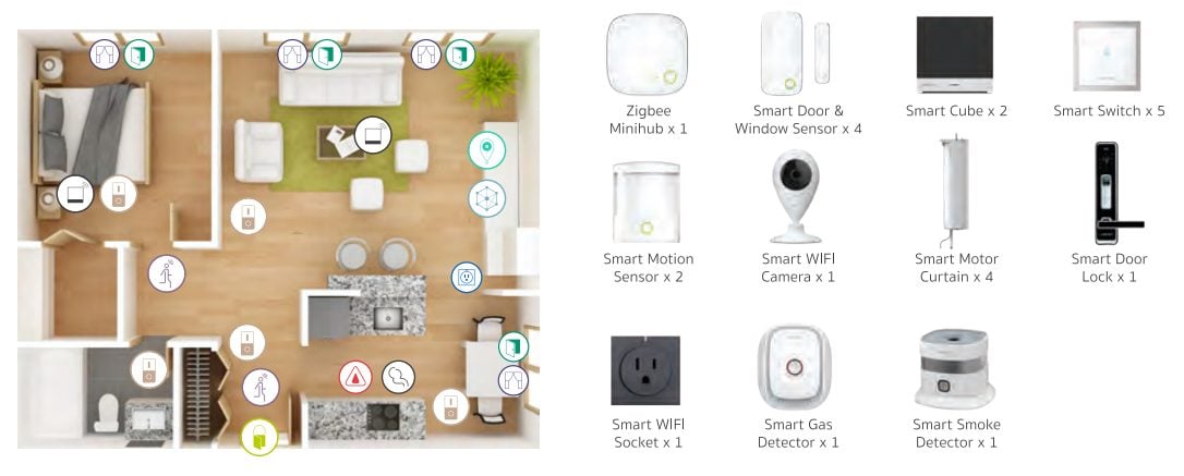 อุปกรณ์ในชุด Lamptan Smart Home Solution นั้นมีมากมายหลายชิ้น เพื่อใช้งานในส่วนต่างๆ ของบ้านนะครับ เช่น เครื่องตรวจก๊าซรั่ว, เครื่องตรวจควันไฟ, เครื่องตรวจน้ำล้น, มอเตอร์ควบคุมผ้าม่าน, สวิซท์ไฟอัจฉริยะ, เซนเซอร์ตรวจจับความเคลื่อนไหว, เซนเซอร์ตรวจความเคลื่อนไหวของหน้าต่าง, กล้อง WiFi อัจฉริยะ, ลูกบิดประตูอัจฉริยะ, อุปกรณ์ส่งสัญญาณ Zigbee สำหรับใช้งานร่วมกับอุปกรณ์อื่นๆ ในมาตรฐาน Zigbee