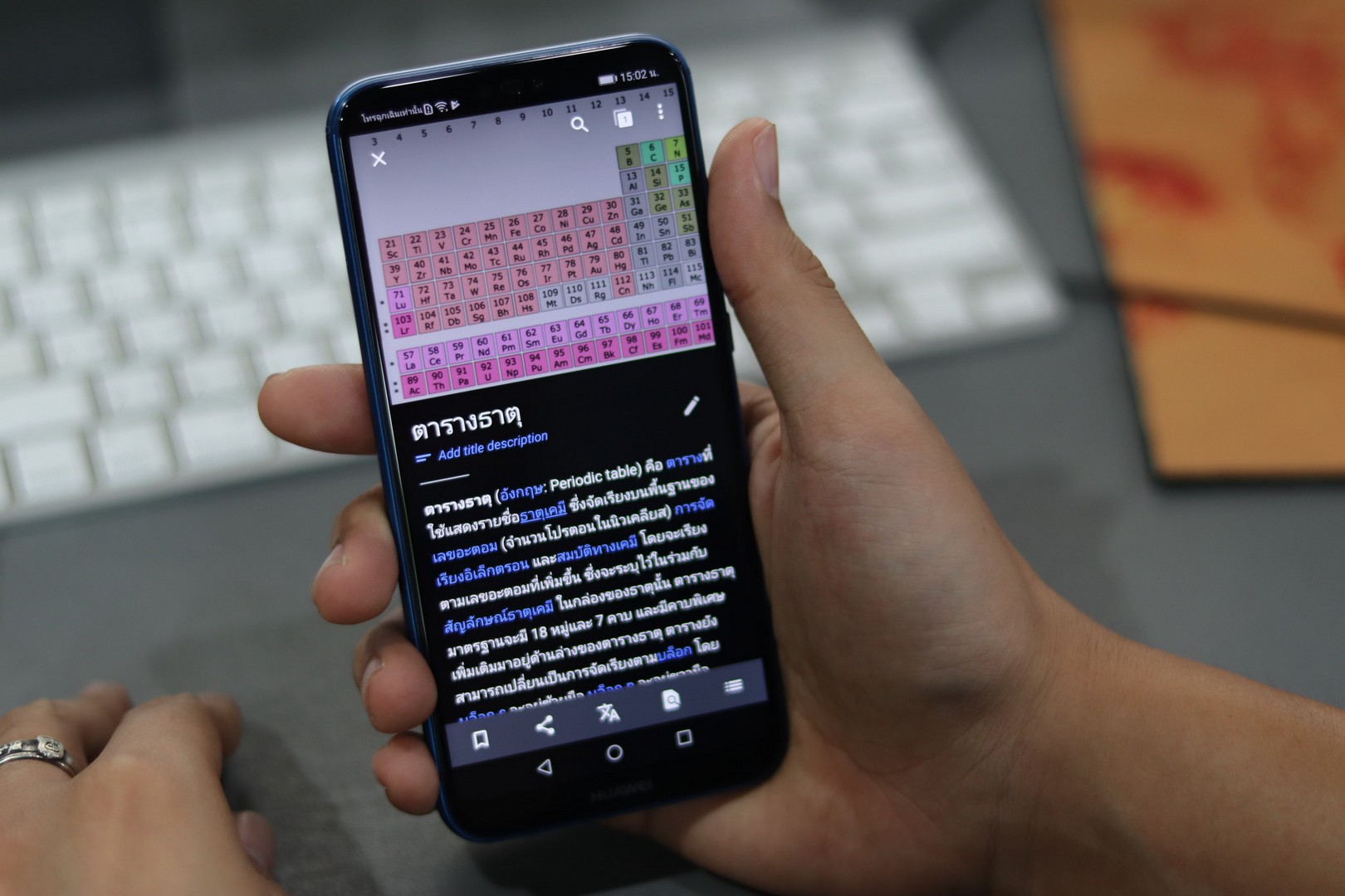 จอตัวนี้หัวเว่ยเคลมว่ารองรับขอบเขตสี NTSC 96% หรือขอบเขตสีที่แสดงในโทรทัศน์ระบบมาตรฐานครับ เมื่อลองใช้งานจริงก็พบว่าเป็นจอที่ดีมากสำหรับมือถือในระดับราคานี้เลยแหละครับ ให้ Contrast ภาพได้ดี เอาไปเปิดแอปที่ฉากหลังดำสนิทอย่าง Wikipedia ในโหมด Black (ที่ออกแบบไว้ใช้กับจอ OLED) ก็รู้สึกว่าสีดำด้านหลังมันดำลึกจริงๆ ตัดกับตัวอักษรสีขาวได้อย่างสบายใจ ไม่ใช่ดำแบบเทาๆ อย่างที่จอ LED จะเป็นกัน ก็พอได้ใช้จอแบบนี้รู้สึกว่าเต็มตาดีนะครับ เครื่องก็ไม่ใหญ่เกินไปจนจับลำบาก