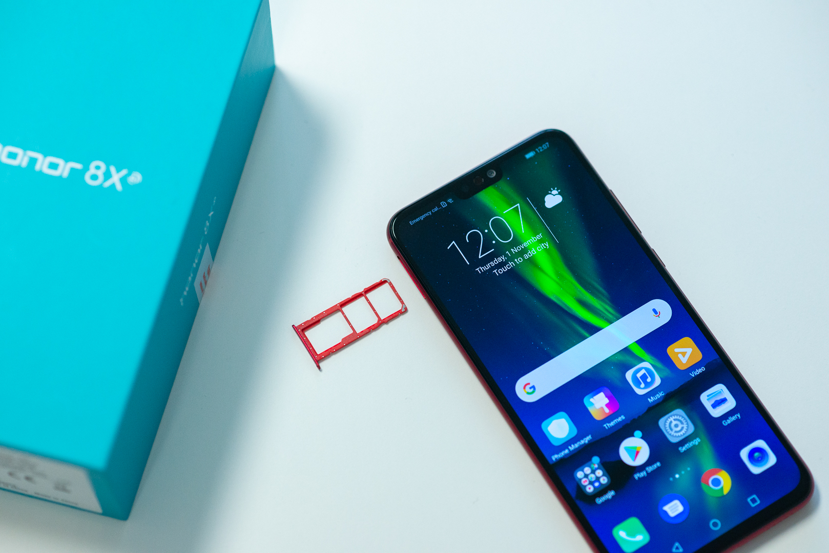สำหรับหน้าจอ Honor 8X มีขนาด 6.5 นิ้วก็เป็นอีก 1 จุดเด่นที่ออกแบบมาด้วยดีไซน์ Notch Full-View Display 2.0 หรือที่เราเรียกกันว่า จอแหว่ง ซึ่งเราสามารถเปิด – ปิดได้ที่หน้า Setting จอมีความละเอียด FullHD 19.5:9 โดยจุดเด่นนี้ทำให้เราสามารถรับชมภาพยนตร์ระดับ 21:9 บนจอมือถือได้โดยไม่โดนบีบ Scale ลงมา และยังมีโหมด Eye Comfort ถนอมสายตาด้วยการลดแสงสีฟ้าของหน้าจอลง สามารถตั้งเวลาให้เปิด / ปิดได้อัตโนมัติ