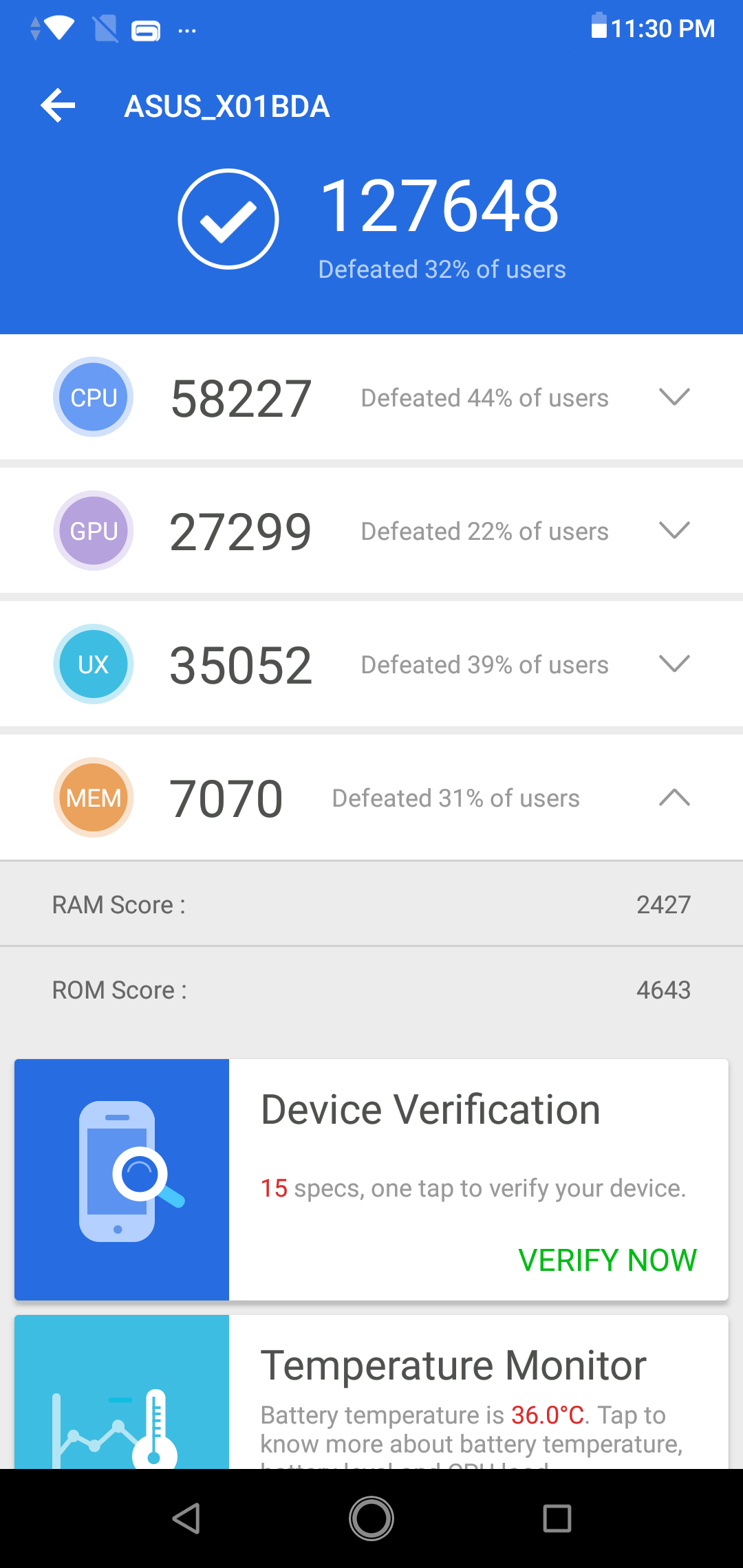 - Antutu 7.1.4 ให้คะแนนไปราว 127,000