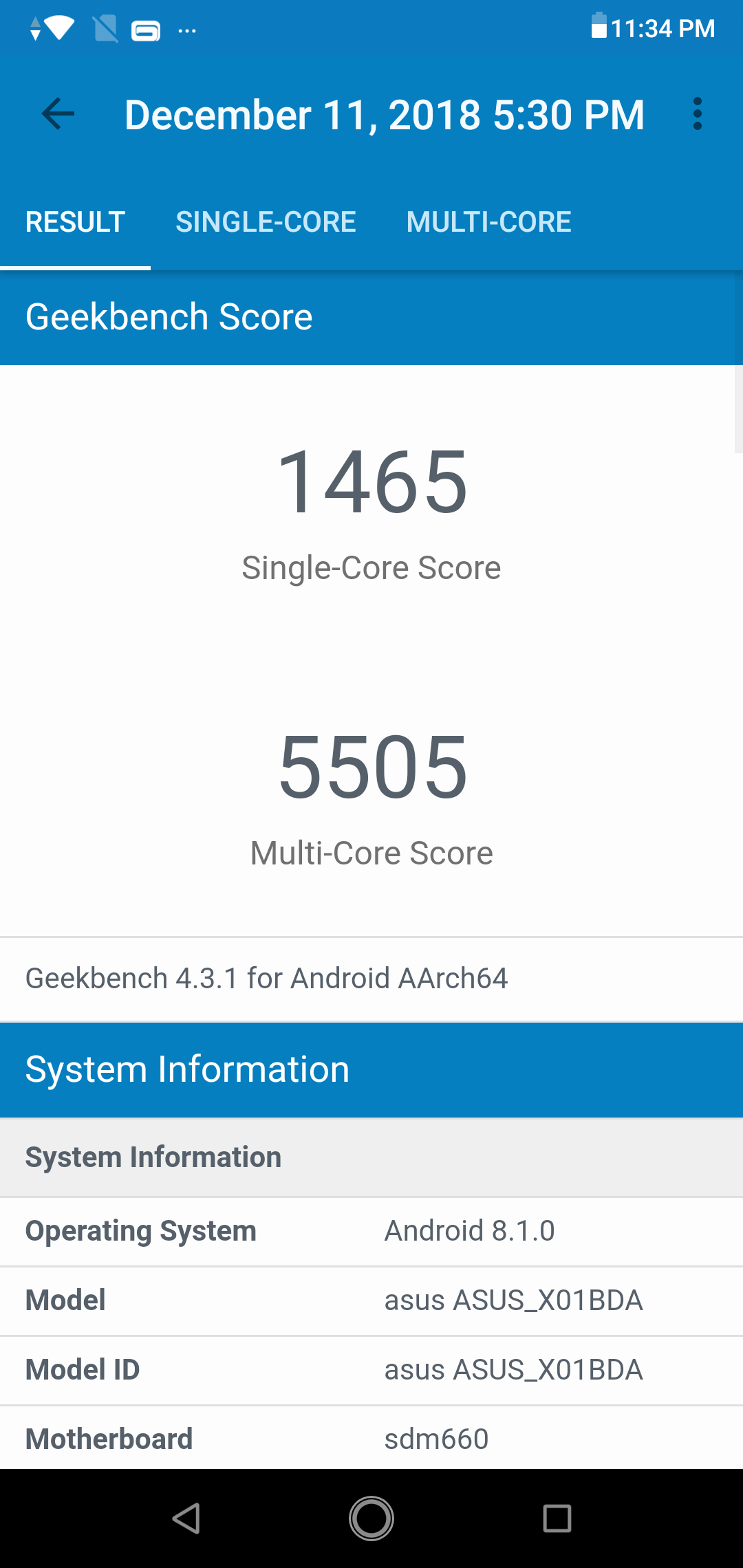 จุดเด่นของ Asus Zenfone Max Pro M2 คือให้แบตเตอรี่มาถึง 5,000 mAh ซึ่งจุมากอันดับต้นๆ ของวงการสมาร์ตโฟนตอนนี้ แต่ยังให้ขนาดตัวเครื่องที่เล็กพกพาสะดวกอยู่ดี ซึ่งแบตที่จุระดับนี้ก็ใช้งานทั่วไปได้ระดับ 2 วันแบบไม่ต้องชาร์จเครื่องได้เลยนะครับ ส่วนใครที่เล่นเกมหนักๆ ก็น่าจะเอาอยู่จนจบครบวันนะครับ มันเกิดมาเพื่อเกมเมอร์จริงๆ อึดมาก และเมื่อเทสด้วย GeekBench 4.3 ก็ได้คะแนนแบตเตอรี่ 6577 ซึ่งใช้เวลาทดสอบ 3 ชั่วโมง แบตเตอรี่ลดไป 25% ครับ