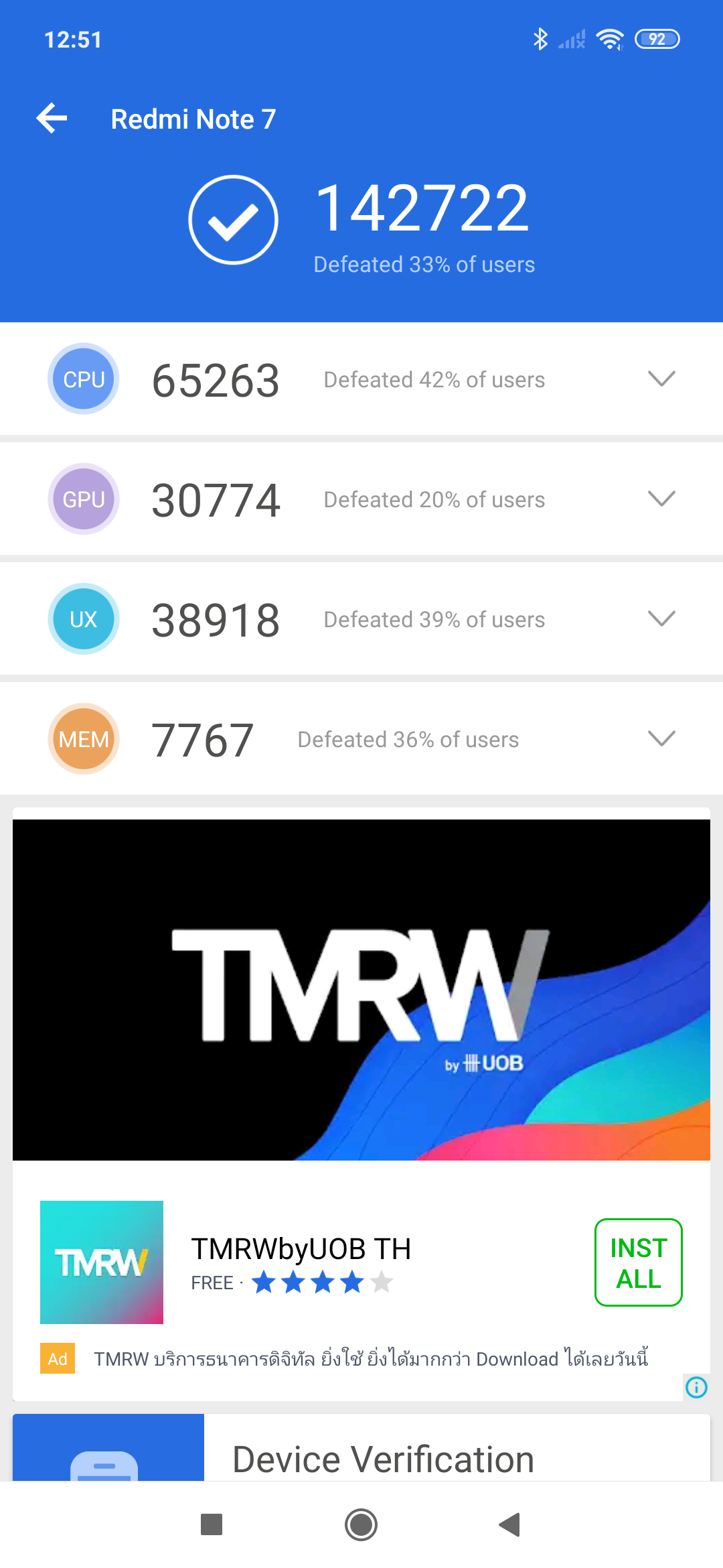 ผลการทดสอบ Benchmark เครื่อง Redmi Note 7 บนแอปฯ ชื่อดังต่าง ๆ มีดังนี้