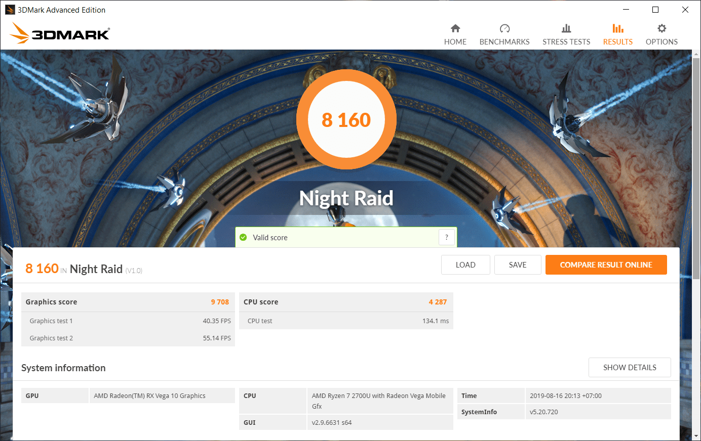 - ชุดทดสอบ Night Raid ได้คะแนน 8160 คะแนน