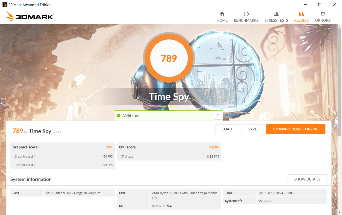 - ชุดทดสอบ Time Spy ได้คะแนน 789 คะแนน