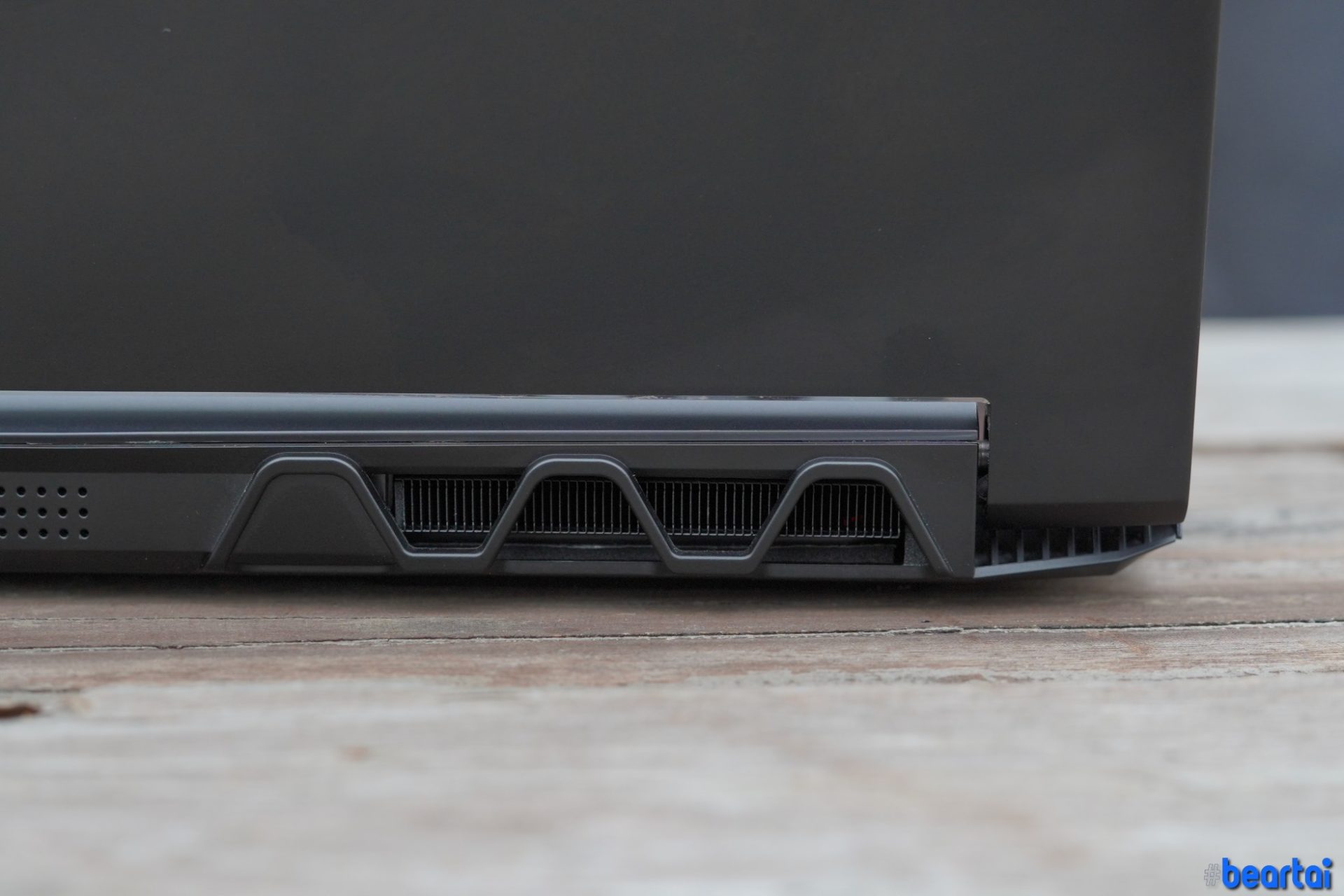 ด้านหลังมาพร้อมระบบระบายความร้อนแบบ Aeroblade 3D Fan รุ่นที่ 4 เอกสิทธิ์เฉพาะของ Acer ที่ปกติจะถูกใช้กับรุ่น Gaming Notebook อย่าง Predator ระดับท็อปก็ถูกพัฒนามาใช้กับ ConceptD 5 Pro ตัวนี้ด้วย ซึ่งจะทำงานด้วยเสียงรบกวนต่ำกว่า 40dBA ทำให้การระบายความร้อนเป็นไปได้อย่างดีเยี่ยมและเงียบมาก แม้จะอยู่นอกห้องแอร์ ก็ยังสามารถทำงานได้อย่างเต็มประสิทธิภาพ