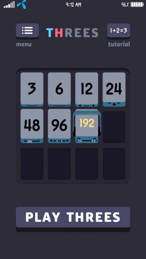 เกม Threes! พัฒนาโดย Sirvo LLC ได้รับรางวัล IGF 2014 Excellence in Design โดย Honorable Mention, Apple Game of the Year 2014 และ Apple Design Award 2014 Winner การันตีด้วยรางวัลอย่างนี้ ชักน่าสนใจขึ้นมาแล้ว ลองมาดูกันว่าเกมนี้เล่นอย่างไร