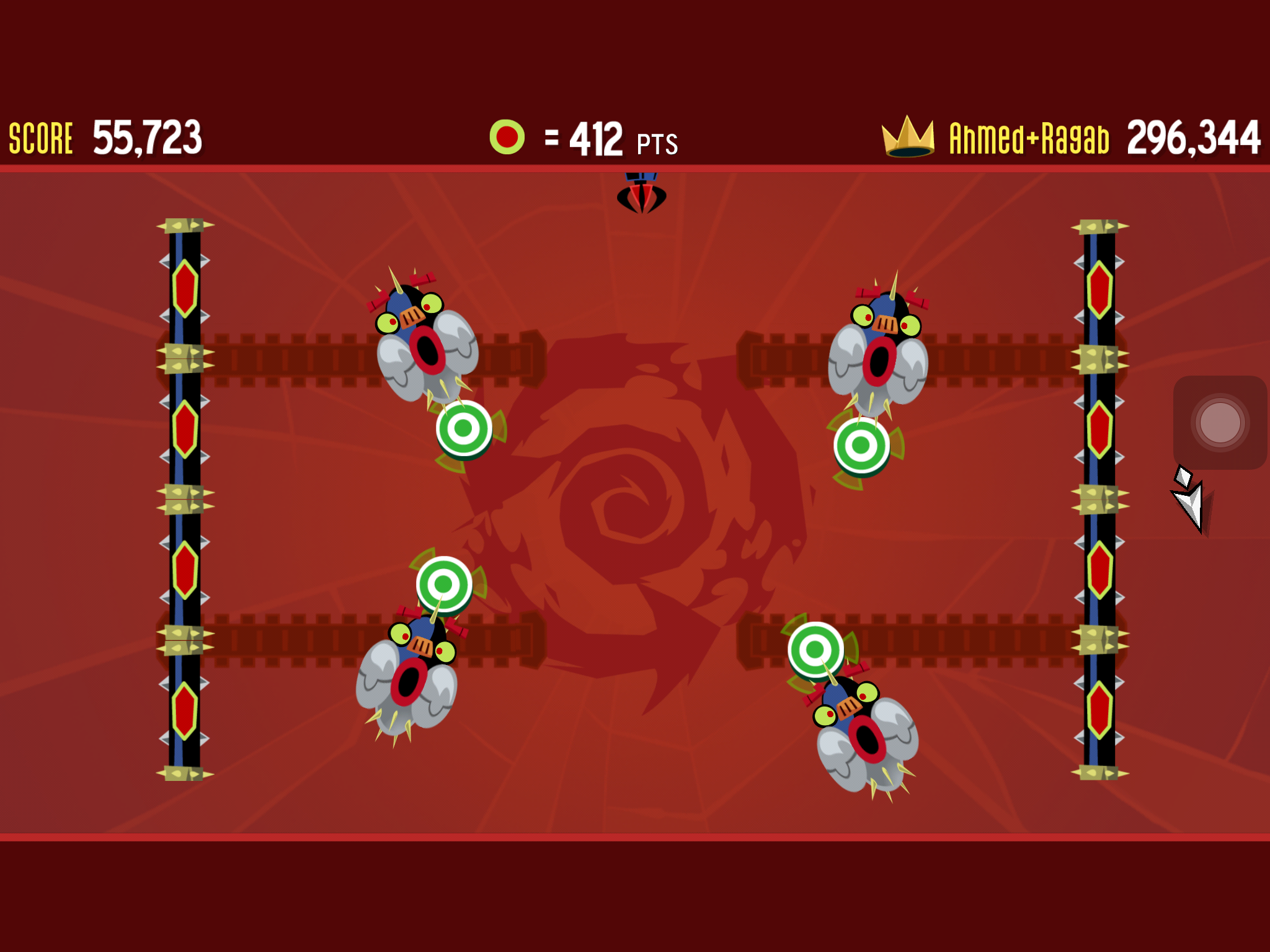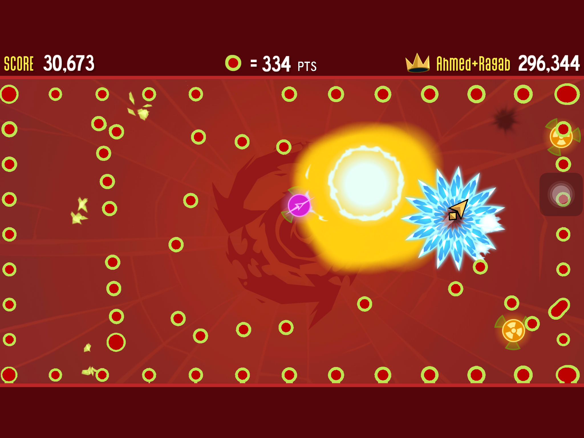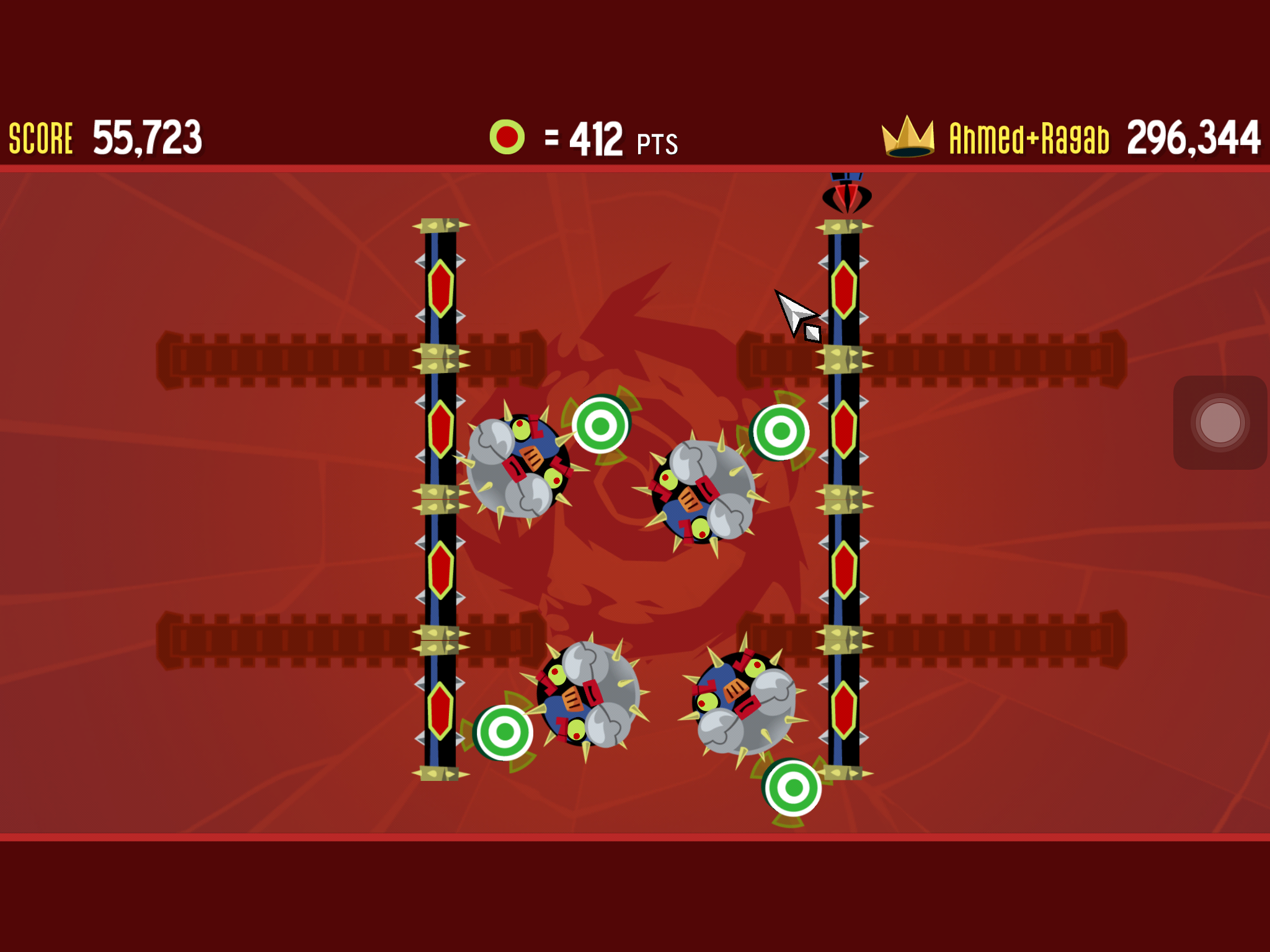 เมื่อเริ่มเข้าเกมในโหมด Classic และ Code Red ก็จะมีลูกศรออกมา รอสักพักก็จะมีศัตรูโผล่ออกมา ซึ่งเป็นจุดสีแดง ให้เราขยับจอหนีบรรดาจุดสีแดงให้เร็วที่สุดเท่าที่จะทำได้ เพราะพวกมันไล่ตามเราตลอด ยิ่งได้คะแนนมากขึ้นก็จะยิ่งมาหาเรามากขึ้น ในเกมก็จะมีอาวุธที่เอาไว้จัดการกับศัตรูด้วย เช่น ลูกบอล ดาบเลเซอร์แบบ Star Wars ระเบิด ตัวดูด (ดูดศัตรูเข้าหาเราให้พวกมันตาย) ชุดล่องหน (เป็นหน้าตุ๊กตาที่ศัตรูจะมองไม่เห็นเรา) ลูกตุ้มหนาม กระสุนน้ำแข็ง อาวุธแต่ละอย่างจะค่อยๆ ปลดล็อกเมื่อเราเล่นผ่านในแต่ละ Level แล้วสักพักจะมีศัตรูแปลกๆ อย่างธนูใหญ่ที่ยิงใส่เรา หรือศัตรูหน้าตาแปลกๆ ซึ่งวิธีเอาชนะคือ ให้ชนกับเป้าสีขาว-เขียว ที่หมุนรอบศัตรูให้ได้เพื่อเอาชนะ บางครั้งศัตรูอาจจะล่องหนโดยที่จะเห็นแค่ตัวเราและรอบๆ จะมืด ก็เป็นอีกความท้าทายของเกมนี้เลย