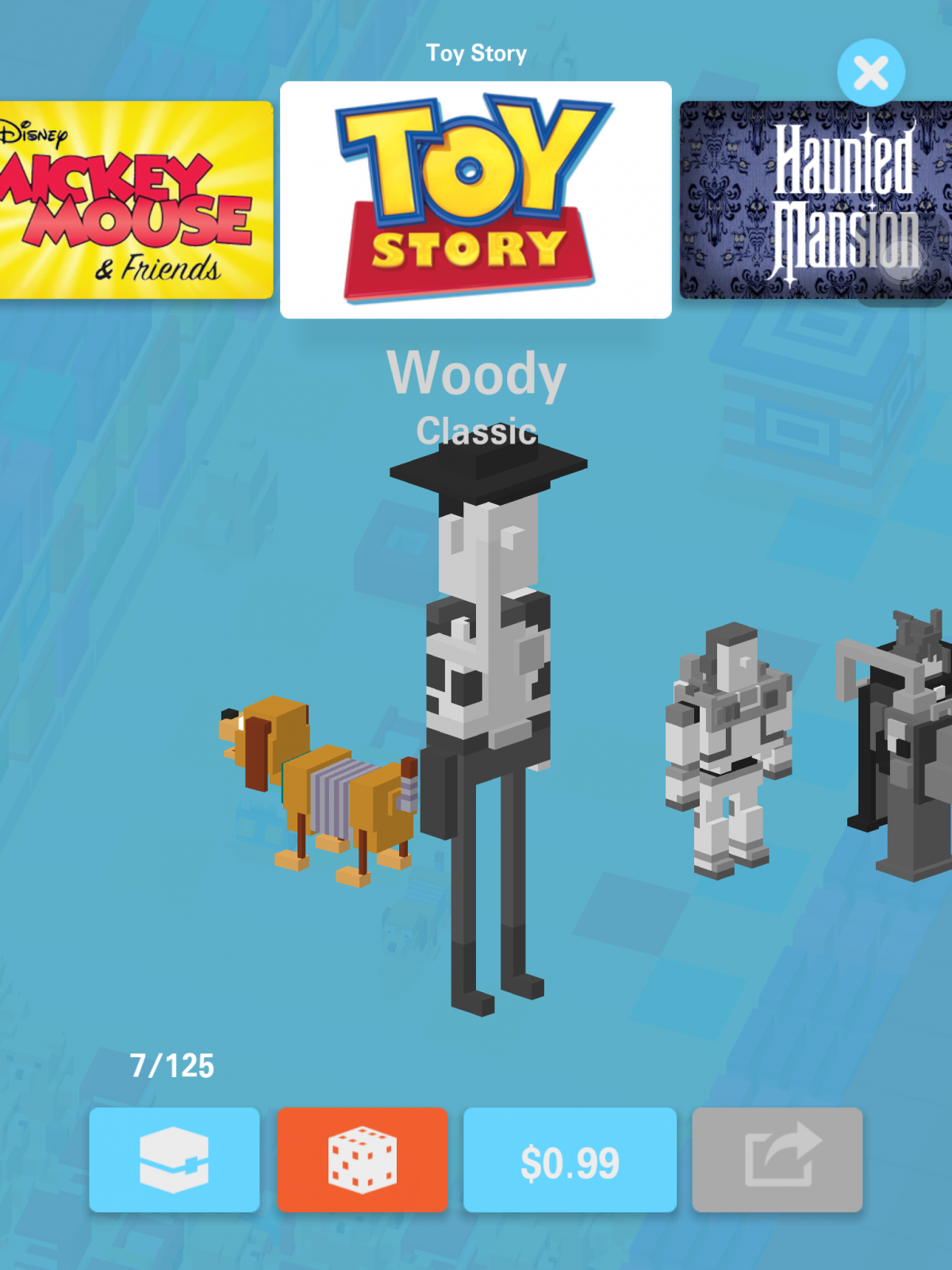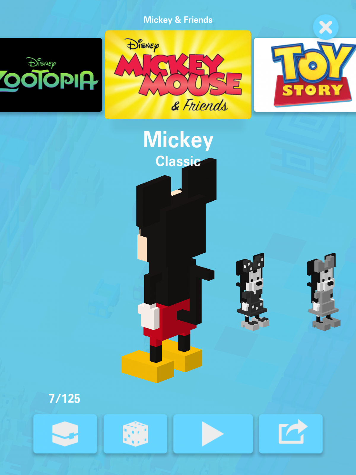 วิธีเล่นเกมนี้ เพียงแค่กดที่จอ ข้ามถนนไปตามหนทาง ไปทางซ้ายหรือขวาด้วยการปัดไปตามทางที่ต้องการ เดินไปเพื่อให้ได้คะแนนมากที่สุด ความสนุกจะอยู่ที่ต้องระวังไม่ให้เราโดนชน ตกหลุม ตกน้ำ ตกขอบ ถ้าเดินช้า ก็จะโดนบางอย่างจับตัวไป หรือตกออกจากฉาก ซึ่งในแต่ละฉากก็จะเป็นสถานที่ของแต่ละเรื่อง ซึ่งมีทั้งเรื่อง Zootopia, Mickey Mouse, Toy Story, Haunted Mansion, The Lion King, Tangled, Big Hero 6, Inside Out และ Wreck-it Ralph แต่ละฉากก็จะเล่นเป็นตัวละครในเรื่องนั้นๆ ไม่สามารถข้ามเรื่องได้ มีตัวละครให้เลือกหลากหลาย เช่น Joy จาก Inside Out, Simba จาก The Lion King หรือ Woody จาก Toy Story มีบางฉากที่จะมีการเก็บคะแนนในรูปแบบที่นอกเหนือจากการเดิน เช่น ฉากของ Inside Out ให้เก็บบล็อกสี่เหลี่ยมตามทางแล้วเก็บเป็นคะแนนได้ หรือ Wreck-it Ralph มีตัวละครอย่าง Hero’s Duty Ralph ที่สามารถยิงปืนได้ ฉากเรื่องดังกล่าวนี้มีไอเทมอย่างลูกกวาด หรือเชอร์รี่ ที่เก็บเป็นคะแนนพิเศษได้ด้วย เมื่อเล่นจบแล้วก็สามารถแชร์ฉากจบลง Social Network กันได้ด้วย