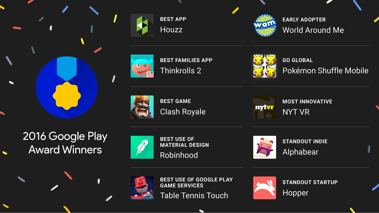 - รางวัลแอพทั่วโลกยอดเยี่ยม ได้แก่ Pokemon Shuffle Mobile