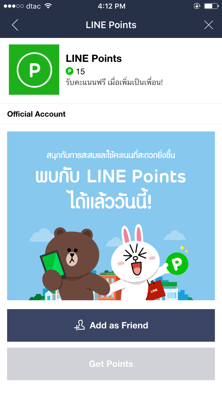 เมื่อเข้ามาที่เพิ่ม LINE Points เป็นเพื่อนแล้ว แค่กด Add Friend ตามปกติก็จะได้แต้มมา 15 แต้มฟรีๆ เลยครับ