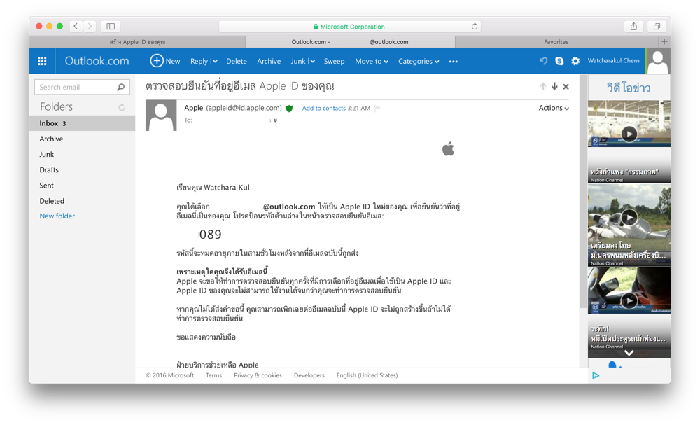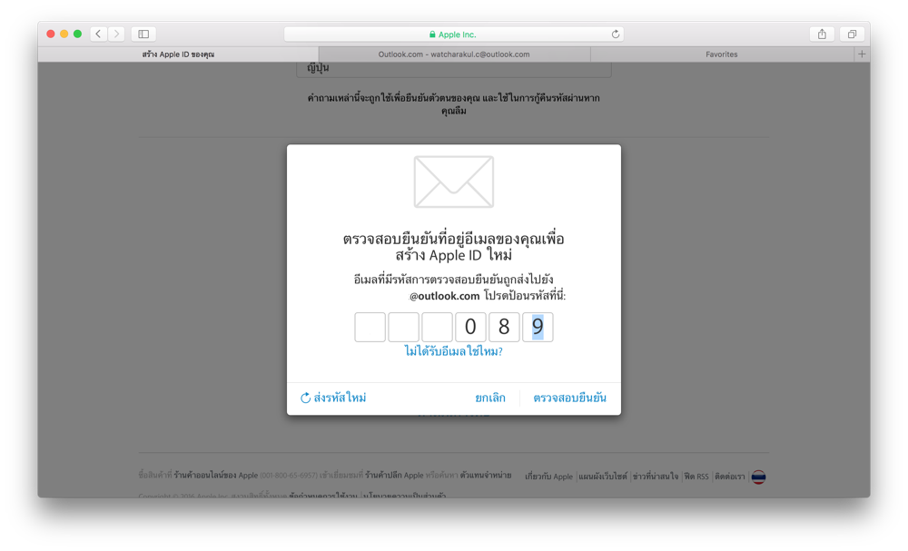 เมื่อกรอกเสร็จแล้วจะมีหน้าต่างเด้งขึ้นมาให้เรานำรหัส 6 หลักมาใส่โดยรหัสผ่านจะถูกส่งเข้าไปที่อีเมลที่เราใช้สมัคร Apple ID