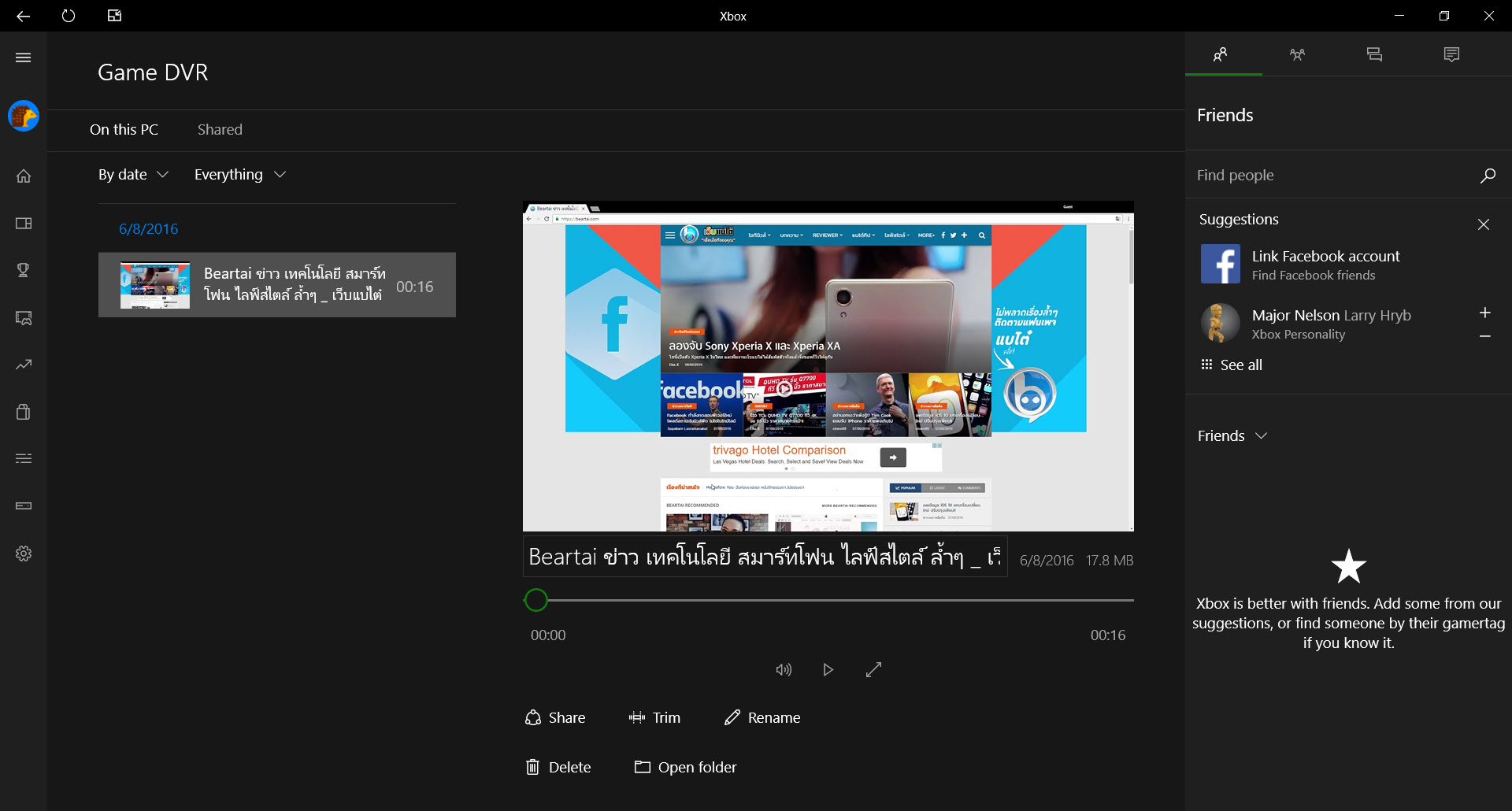 ซึ่งในแอป Xbox นั้นก็จะให้เราสามารถตัดบางส่วนของการอัดวีดีโอออก หรือ จะเป็นการแชร์ออกไปก็ได้ด้วย