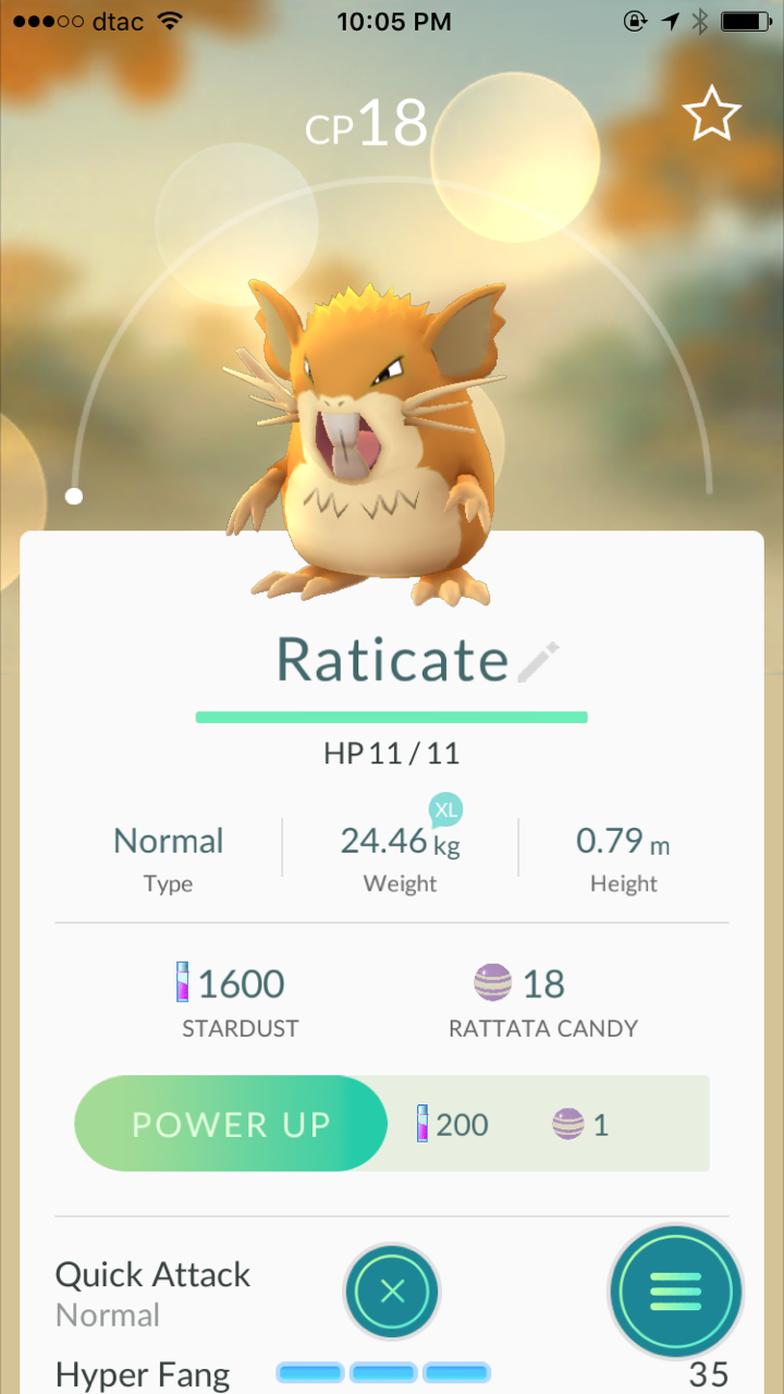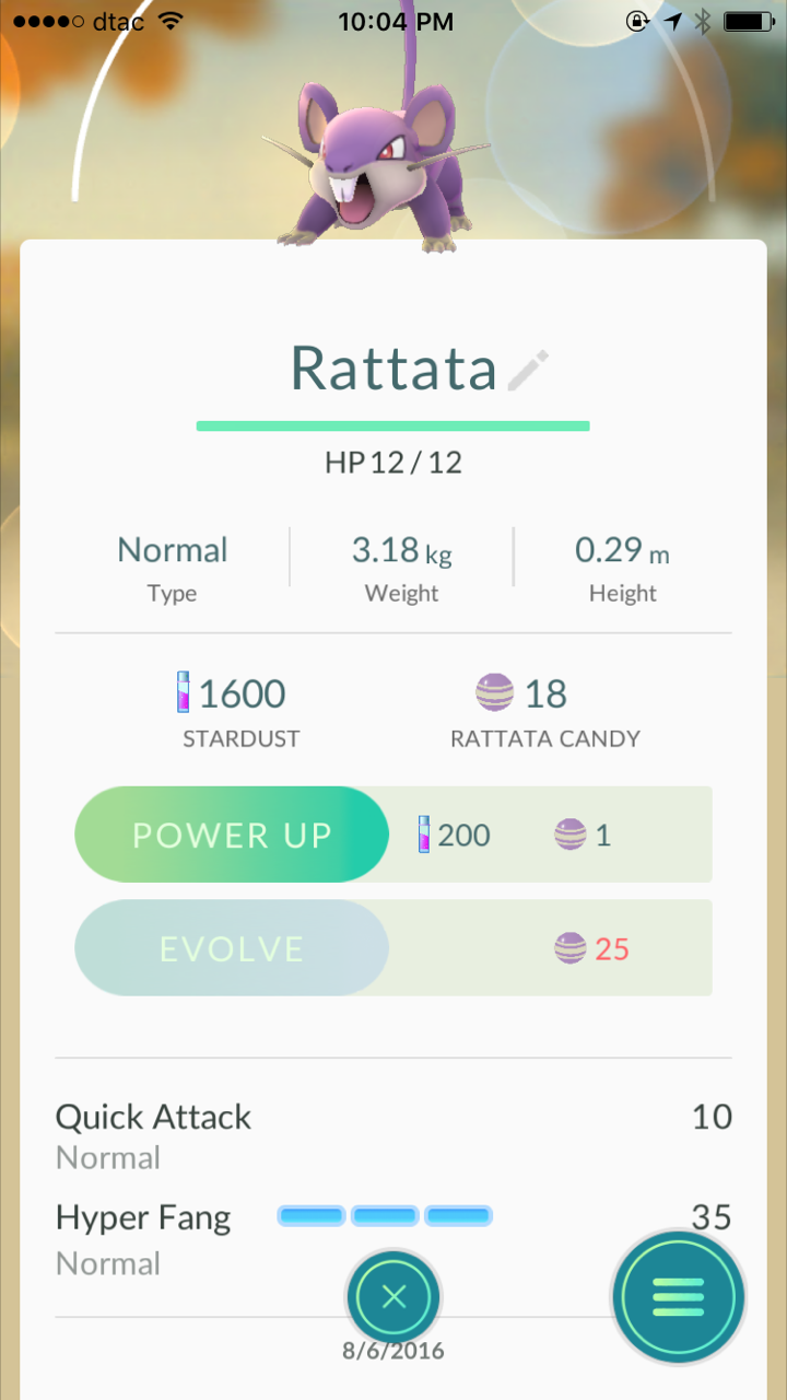จะสังเกตได้ว่า ลูกอมของ Rattata จะถูกเพิ่มขึ้นมาอีกหนึ่งหน่วย โดย Rattata จะต้องใช้ลูกอมในการพัฒนาถึง 25 อัน แสดงว่าเราต้องจับอีกหลายตัวเพื่อเอาลูกอมาพัฒนา Rattata ครับ